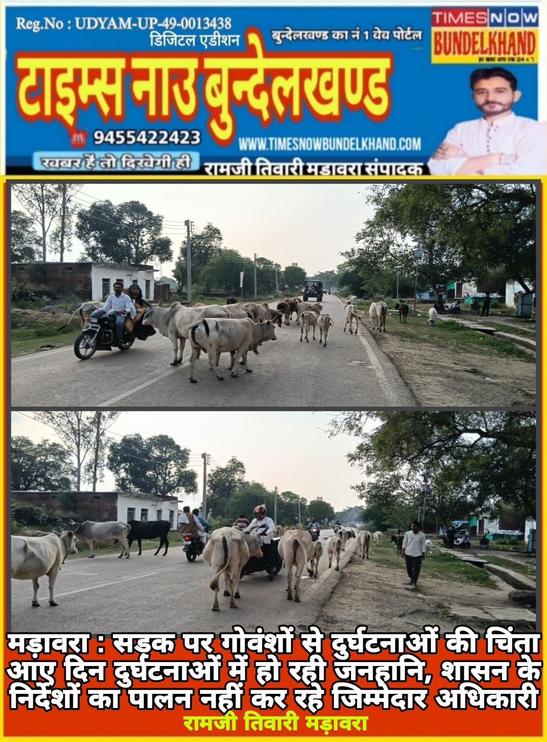 सड़क पर गोवंशों से दुर्घटनाओं की चिंता आए दिन दुर्घटनाओं में हो रही जनहानि, शासन के निर्देशों का पालन नहीं कर रहे जिम्मेदार अधिकारी