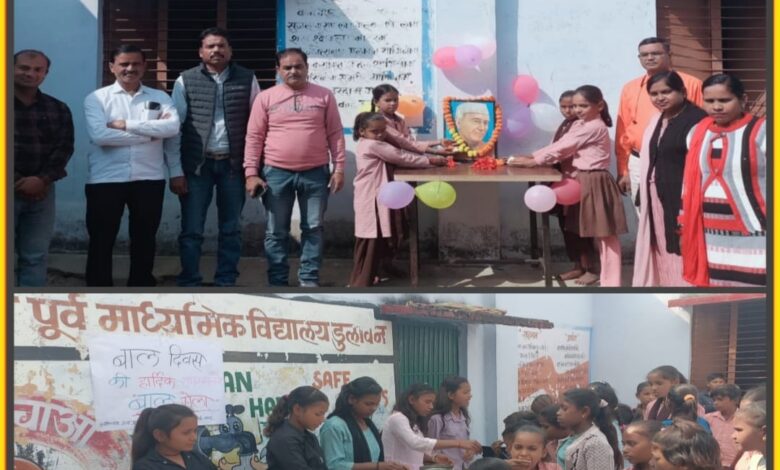 (ललितपुर) संविलियन उच्च प्राथमिक विद्यालय डुलावन में बाल दिवस के अवसर पर देश के प्रथम प्रधानमंत्री पंडित जवाहरलाल नेहरू की जयंती हर्षोल्लास के साथ मनाई।कार्यक्रम के पूर्व विद्यालय परिवार एवं बच्चों ने चाचा नेहरू के चित्र पर माल्यार्पण किया।इस दौरान बच्चों को संबोधित करते हुए इंचार्ज प्रधानाध्यापक वीर सिंह ने कहा कि चाचा नेहरु का जन्म 14 नवंबर 1889 को उत्तर-प्रदेश की संगम नगरी प्रयागराज में हुआ था।इनके पिता का नाम मोतीलाल नेहरु व माता का नाम स्वरूपरानी था।इनकी प्रारंभिक शिक्षा उनके घर पर में ही हुई थी।उनकी शादी सन् 1916 में कमलादेवी से हुई थी।सहायक अध्यापक पुष्पेंद्र जैन ने कहा कि चाचा नेहरू बच्चों से बहुत ही प्रेम करते थे। चाचा नेहरू ने सन् 1920 में गांधी जी के नेतृत्व में उनके असहयोग आंदोलन में भाग लिया और देश की सेवा में अपना योगदान दिया।देश के प्रथम प्रधानमंत्री बनने के बाद उन्होंने पंचवर्षीय योजनाओं को लागू करके देश में कृषि व्यवस्था में सुधार करवाया और देश को सर्वोच्च स्थान पर पहुचाने में उनका महत्वपूर्ण योगदान रहा। 75 वर्ष की आयु 27 मई 1964 में उनकी मृत्यु हुई थी।चाचा नेहरु आज भी हमारे प्रेरणाश्रोत हैं ।उनके जन्मदिन को बालदिवस के रूप में सम्पूर्ण देश मना रहा है।चाचा नेहरु हमेशा कहते थे कि “हिंदुस्तान मेरे खून में समाया हुआ है।” देश को सर्वोच्च स्थान पर पहुचाने में उनका महत्वपूर्ण योगदान रहा। चाचा नेहरु आज भी हमारे प्रेरणाश्रोत हैं। विद्यालय के छात्र-छात्राओं