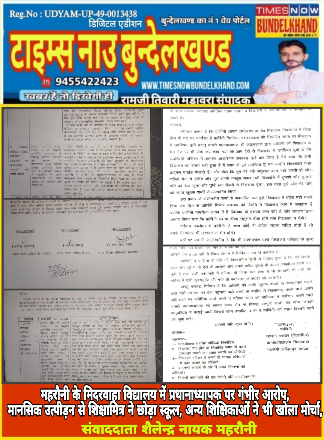 पीड़िता शिक्षामित्र साधना पस्तोर ने 21 नवंबर 2025 को जिला बेसिक शिक्षा अधिकारी को शिकायती पत्र देकर प्रधानाध्यापक के खिलाफ जांच व कार्रवाई की मांग की थी। शिकायत में बताया गया कि 21 नवंबर को विद्यालय पहुंचने पर प्रधानाध्यापक ने गेट पर रोककर अभद्रता की और आकस्मिक अवकाश चढ़ाने की बात कही। विरोध करने पर नौकरी से निकलवाने की धमकी देते हुए जातिसूचक शब्दों का प्रयोग किया गया। पीड़िता का आरोप है कि प्रधानाध्यापक मिड-डे मील में अधिक उपस्थिति दर्ज कराने का दबाव बनाते हैं और समय से पहले हस्ताक्षर कराकर बाद में ब्लैकमेल करते हैं।