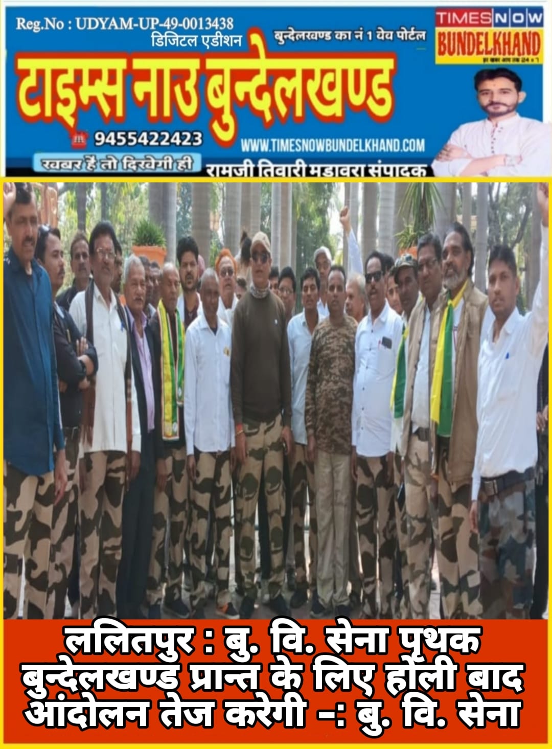 बु. वि. सेना पृथक बुन्देलखण्ड प्रान्त के लिए होली बाद आंदोलन तेज करेगी -: बु. वि. सेना