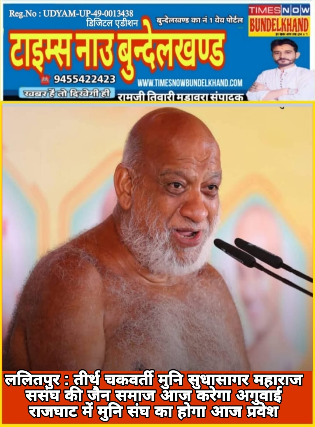 तीर्थ चकवर्ती मुनि सुधासागर महाराज ससंघ की जैन समाज आज करेगा अगुवाई राजघाट में मुनि संघ का होगा आज प्रवेश