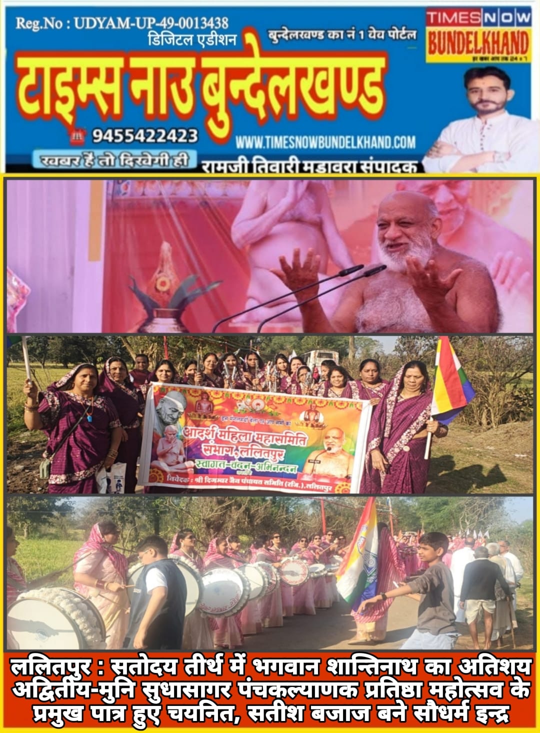 सतोदय तीर्थ में भगवान शान्तिनाथ का अतिशय अद्वितीय-मुनि सुधासागर पंचकल्याणक प्रतिष्ठा महोत्सव के प्रमुख पात्र हुए चयनित, सतीश बजाज बने सौधर्म इन्द्र