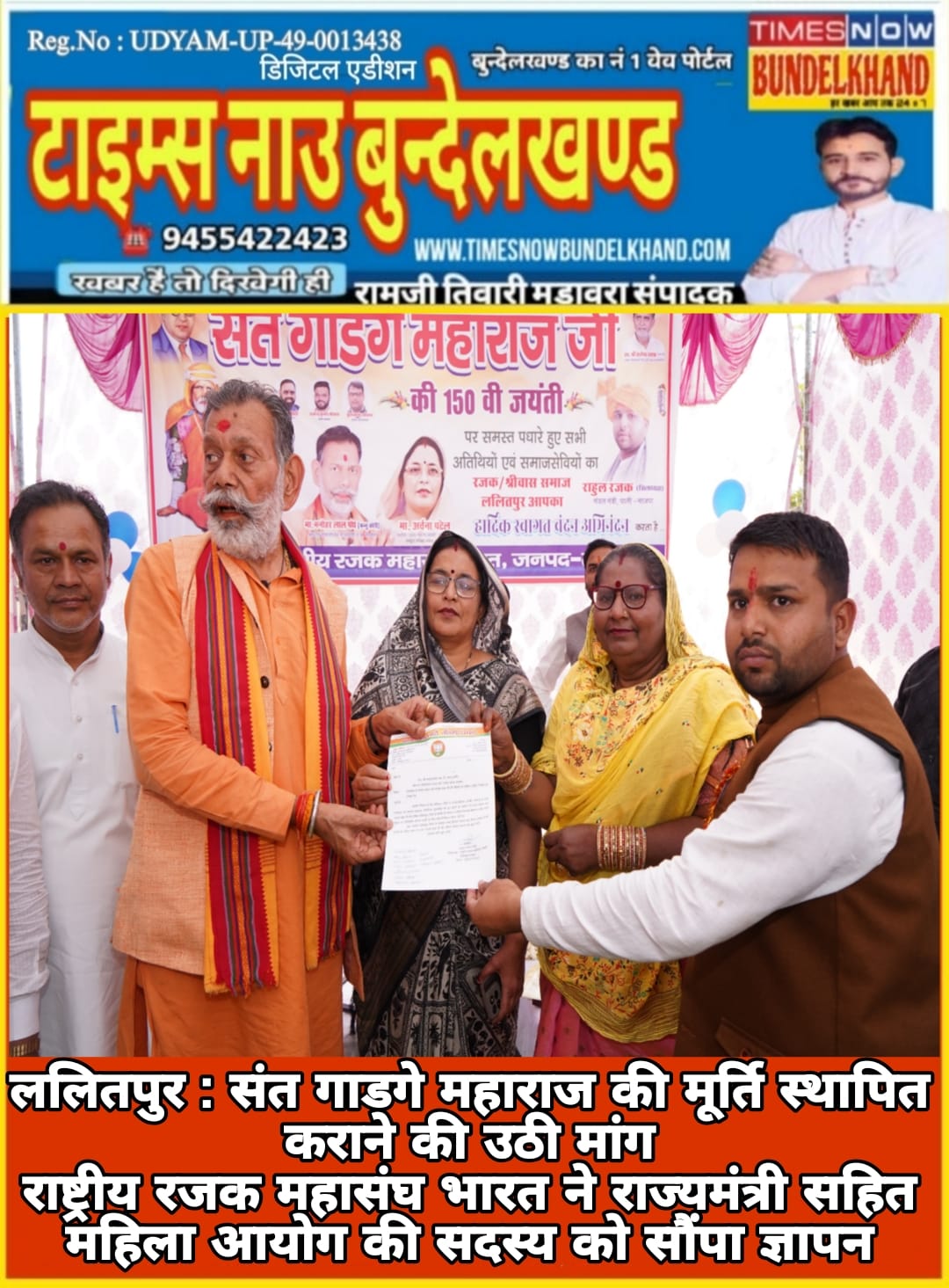 संत गाडगे महाराज की मूर्ति स्थापित कराने की उठी मांग राष्ट्रीय रजक महासंघ भारत ने राज्यमंत्री सहित महिला आयोग की सदस्य को सौंपा ज्ञापन