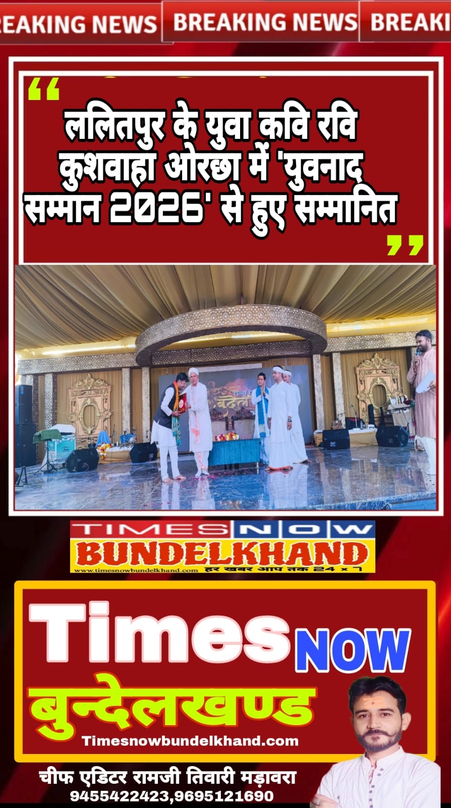 *ललितपुर के युवा कवि रवि कुशवाहा ओरछा में ‘युवनाद सम्मान 2026’ से हुए सम्मानित*