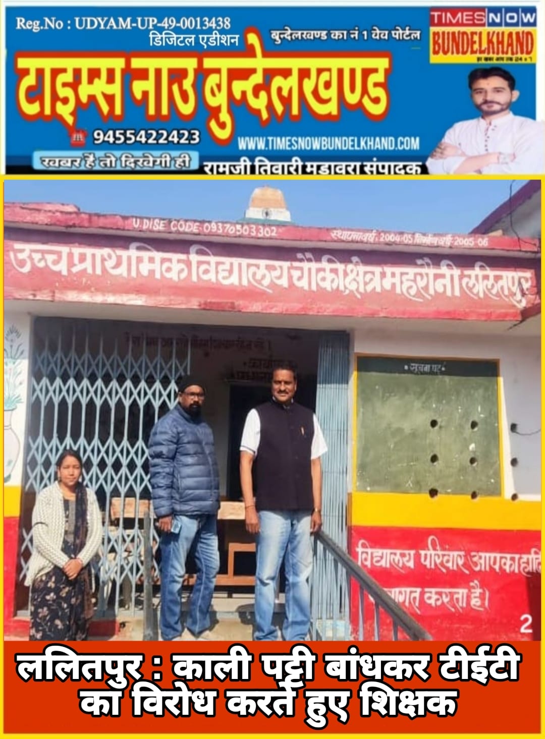 टीईटी अनिवार्यता के विरोध में प्रान्तीय नेतृत्व के आवहन पर टीचर फ्रेडरेशन आफ इण्डिया (TFI) के बैनर तले उत्तर प्रदेशीय जूनिहाईस्कूल पू.मा. शिक्षक संघ ललितपुर एव उ.प्र. प्राथमिक शिक्षक संघ और उ.प्र. महिला शिक्षक सध ललितपुर के पदाधिकारीयो सहित जनपद के अधिकांश शिक्षक शिक्षिकाओं ने दिनाक 23/02/26 से 25/02/26 तक काली पटटी बाधकर शिक्षण कार्य किया। जिसके अन्तगर्त TET अनिवार्यता के विरूद आंदोलन के द्वितीय चरण के दूसरे दिन भी शिक्षको द्वारा काली पटटी बाधकर विरोध जारी रहा।
