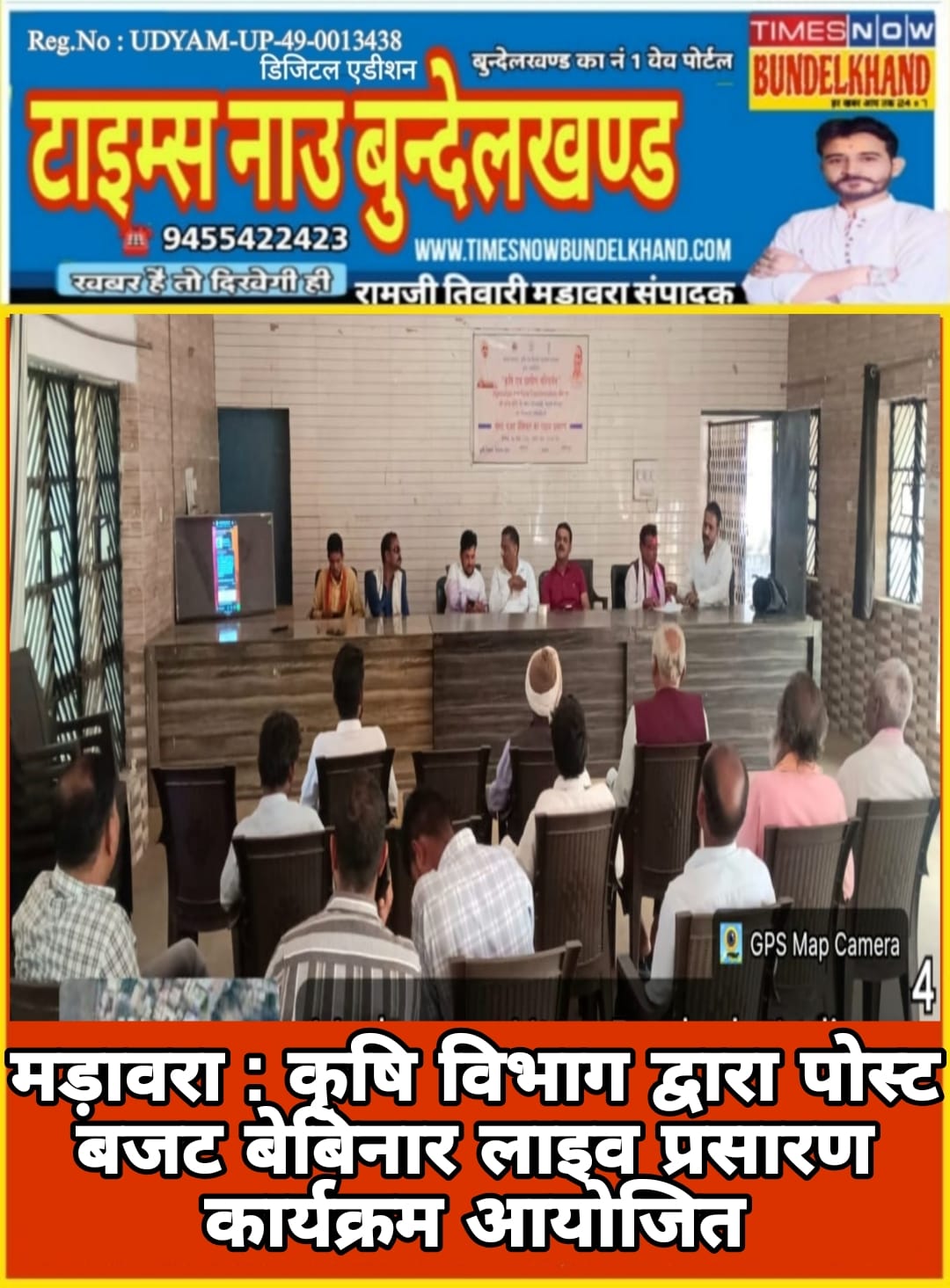 कृषि विभाग द्वारा आयोजित पोस्ट बजट बेबिनार लाइव प्रसारण कार्यक्रम मड़ावरा में मुख्य अतिथि ब्लॉक प्रमुख चंद्रदीप रावत, मंडल अध्यक्ष मुकेश पाल, पूर्व जिला पंचायत सदस्य प्रभु गन्धर्व, कृषि विभाग से बीटीएम संतोष चौहान, AAI भूपेंद्र सेन, ATM संजय दुबे, ATM बबलू कुशवाहा, मथुरा प्रसाद सहित कृषक बंधु आदि उपस्थित रहे। अतिथियों द्वारा कार्यक्रम मे कृषि विभाग से संबंधित कृषकों को विभिन्न जानकारियां दी गईं।