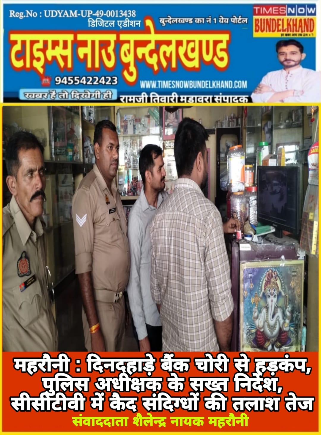 दिनदहाड़े बैंक चोरी से हड़कंप, पुलिस अधीक्षक के सख्त निर्देश, सीसीटीवी में कैद संदिग्धों की तलाश तेज