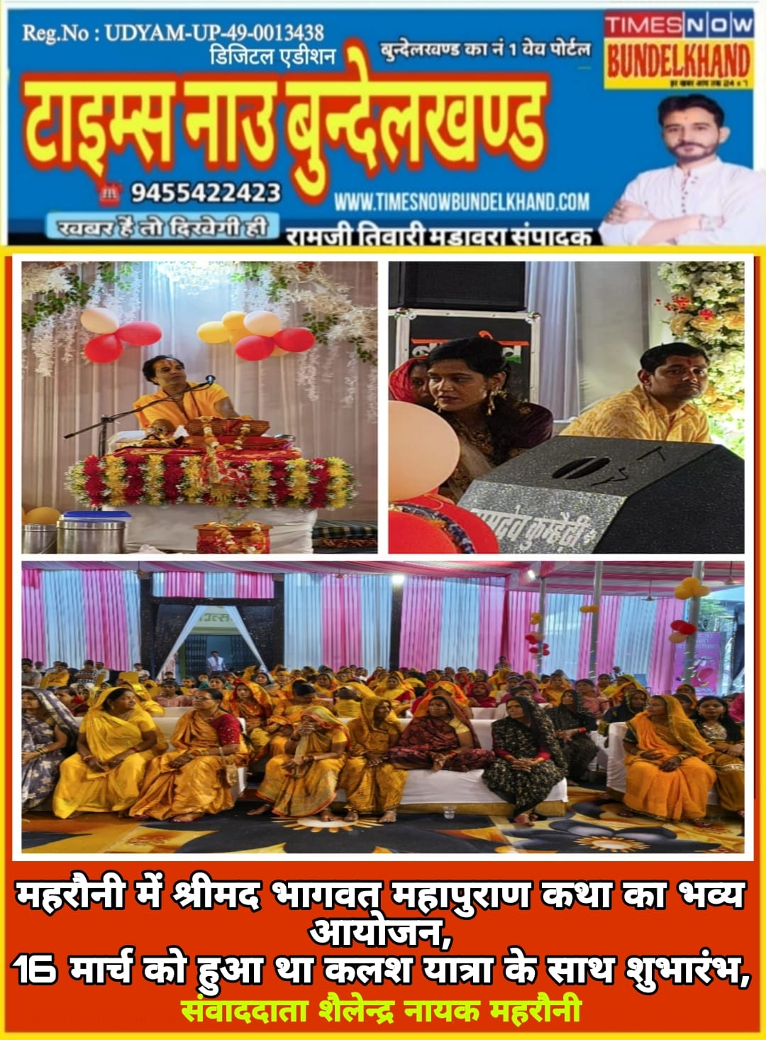महरौनी में श्रीमद भागवत महापुराण कथा का भव्य आयोजन, 16 मार्च को हुआ था कलश यात्रा के साथ शुभारंभ,