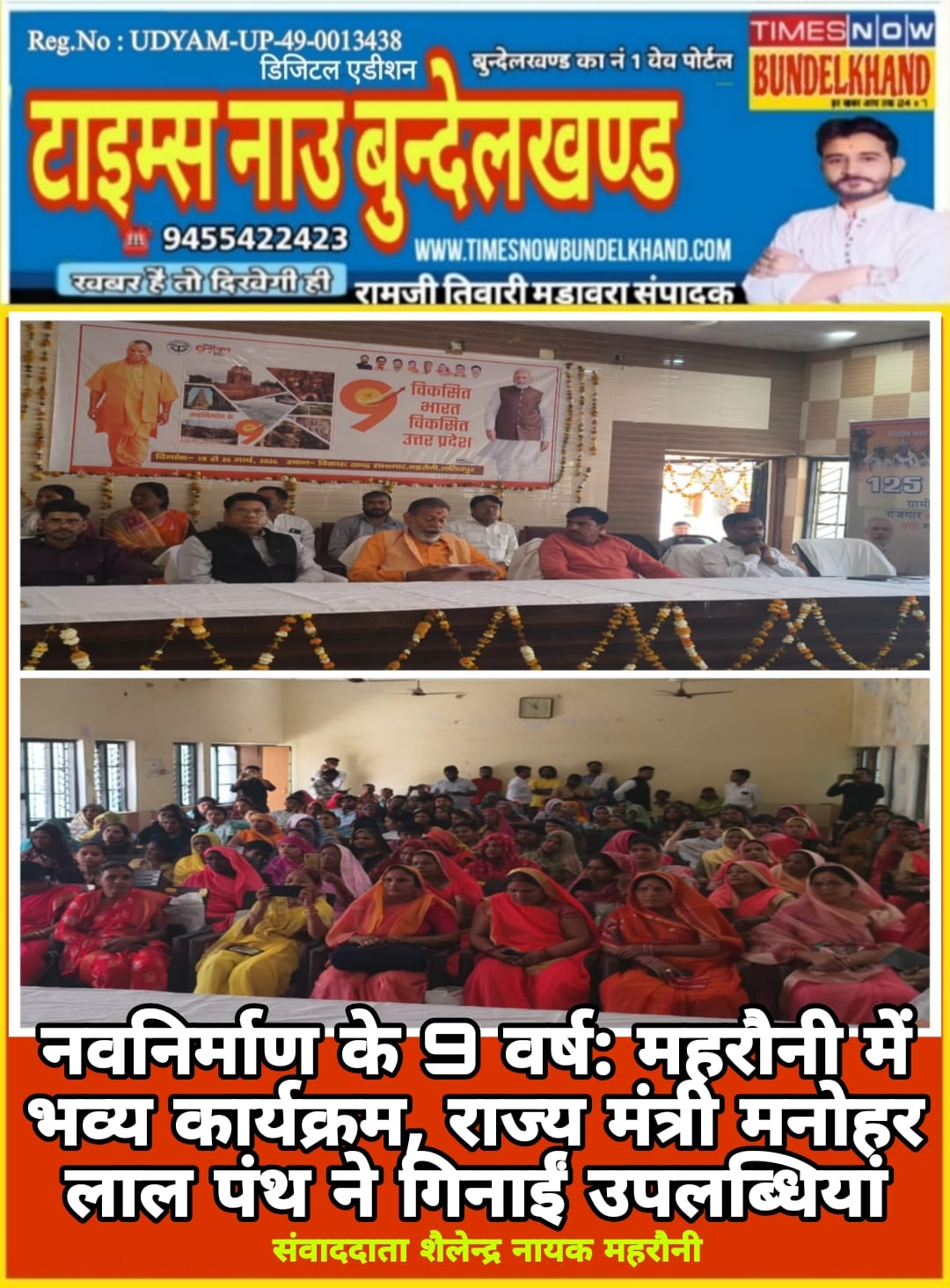 उत्तर प्रदेश सरकार के 9 वर्ष पूर्ण होने के उपलक्ष्य में ‘नवनिर्माण के 9 वर्ष’ कार्यक्रम के तहत खंड विकास कार्यालय महरौनी सभागार में भव्य आयोजन किया गया। कार्यक्रम में श्रम सेवा योजन राज्य मंत्री मनोहर लाल पंथ मुख्य अतिथि के रूप में उपस्थित रहे।