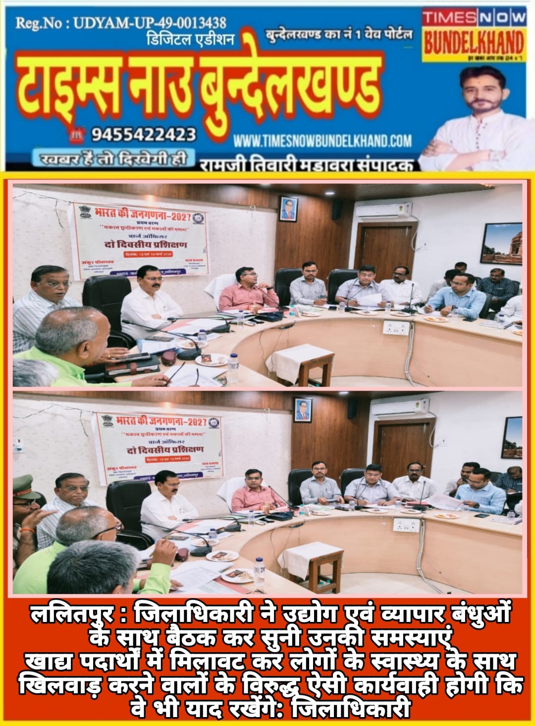 *जिलाधिकारी ने उद्योग एवं व्यापार बंधुओं के साथ बैठक कर सुनी उनकी समस्याएं* *खाद्य पदार्थों में मिलावट कर लोगों के स्वास्थ्य के साथ खिलवाड़ करने वालों के विरुद्ध ऐसी कार्यवाही होगी कि वे भी याद रखेंगे: जिलाधिकारी*