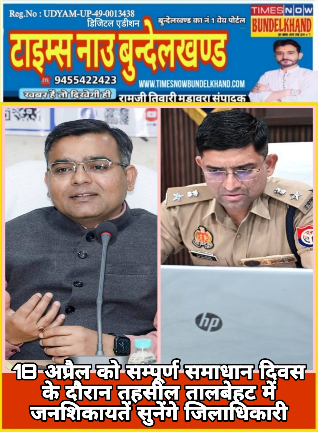18 अप्रैल को सम्पूर्ण समाधान दिवस के दौरान तहसील तालबेहट में जनशिकायतें सुनेंगे जिलाधिकारी