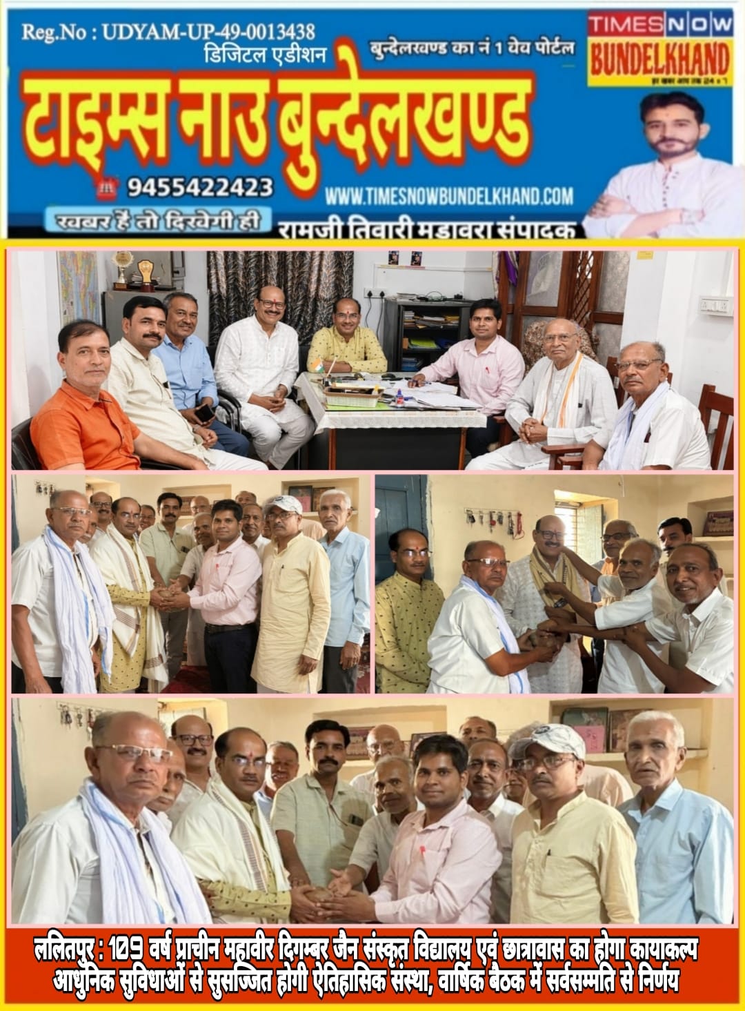 109 वर्ष प्राचीन महावीर दिगम्बर जैन संस्कृत विद्यालय एवं छात्रावास का होगा कायाकल्प आधुनिक सुविधाओं से सुसज्जित होगी ऐतिहासिक संस्था, वार्षिक बैठक में सर्वसम्मति से निर्णय