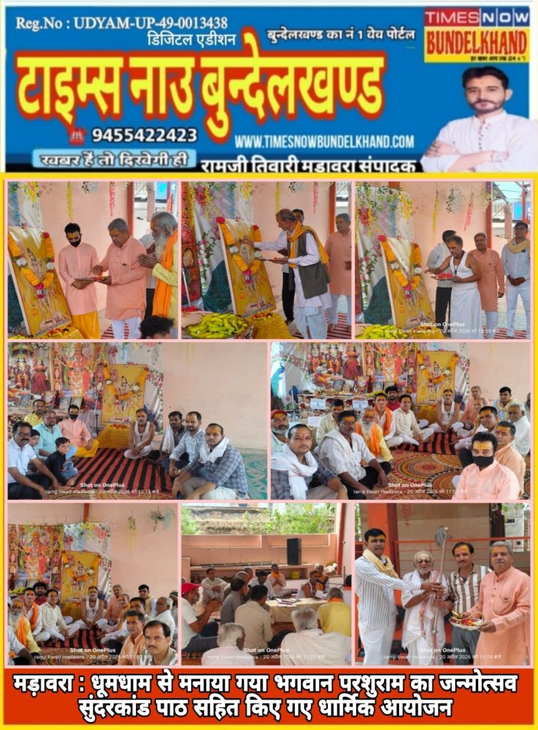 मड़ावरा ललितपुर : कस्बा मड़ावरा के प्राचीन श्री शाला जी मंदिर पर विधिवत मंत्रोच्चार के साथ भगवान श्री परशुराम का जन्मोत्सव मनाया गया है। वैशाख मास के शुक्ल पक्ष की तृतीया तिथि को भगवान परशुराम का जन्मोत्सव मनाया जाता है। प्रातः काल से संगीतमय श्री रामचरित मानस के सुंदरकांड पाठ का शुभारंभ किया गया है। सुंदरकांड समापन के उपरांत विधिवत मंत्रोच्चार के साथ भगवान परशुराम जी का जन्मोत्सव मनाया गया एवं प्रसाद वितरण किया गया है।