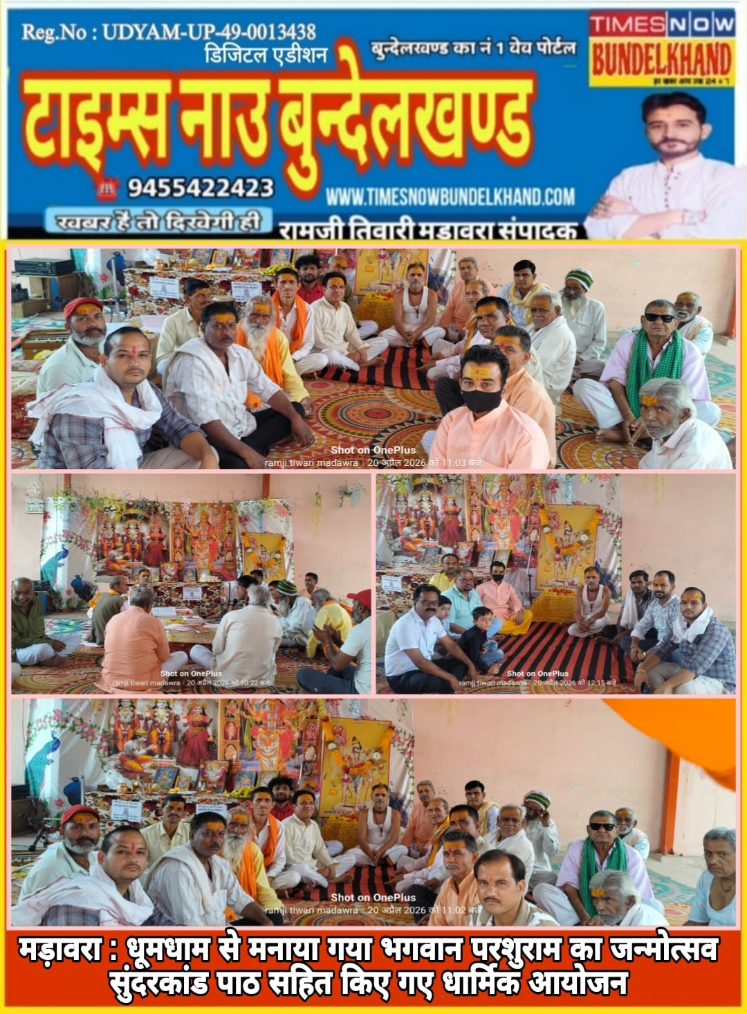 धूमधाम से मनाया गया भगवान परशुराम का जन्मोत्सव सुंदरकांड पाठ सहित किए गए धार्मिक आयोजन