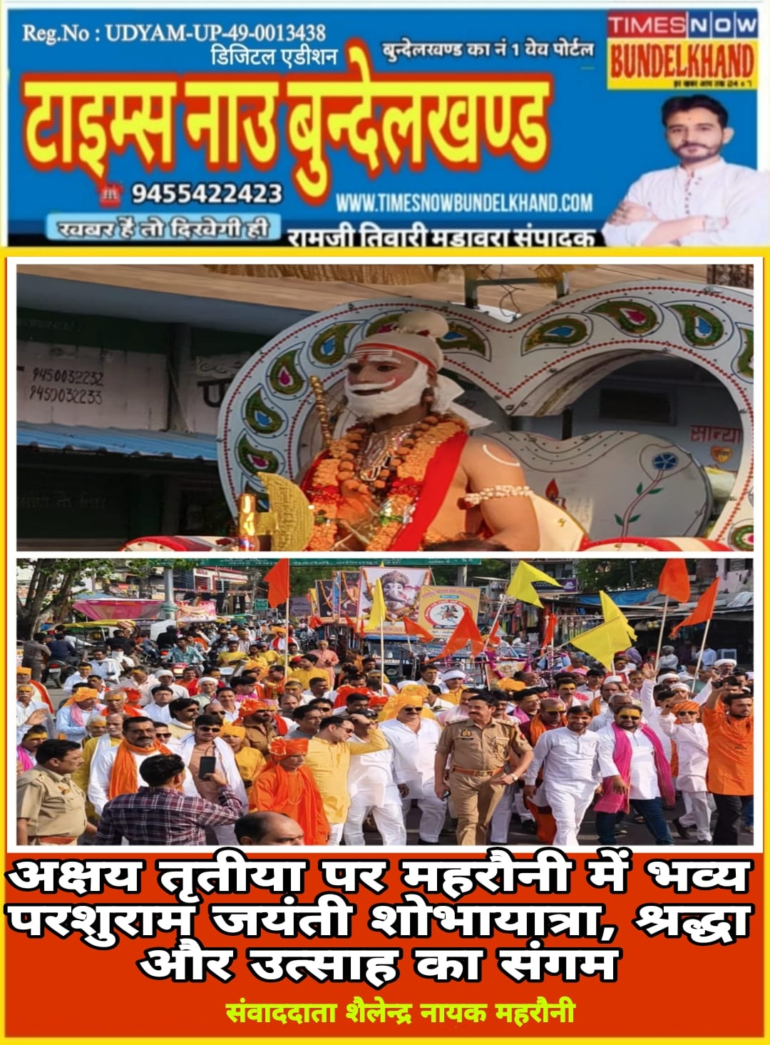 अक्षय तृतीया पर महरौनी में भव्य परशुराम जयंती शोभायात्रा, श्रद्धा और उत्साह का संगम