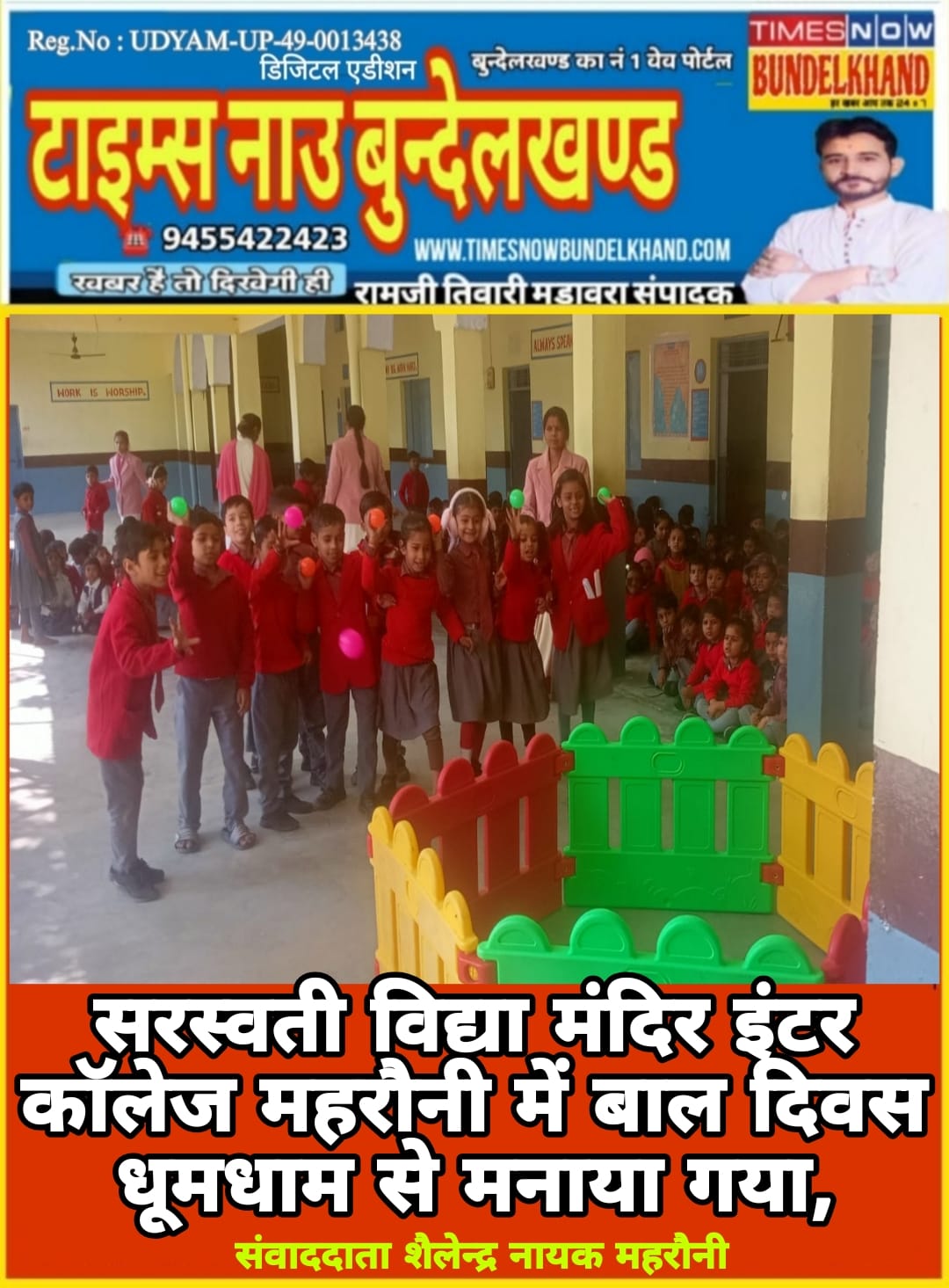 सरस्वती विद्या मंदिर इंटर कॉलेज महरौनी में बाल दिवस धूमधाम से मनाया गया,