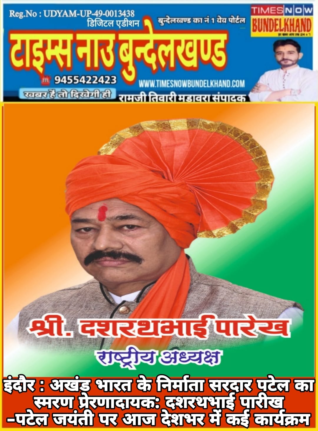 *अखंड भारत के निर्माता सरदार पटेल का स्मरण प्रेरणादायक: दशरथभाई पारीख* -पटेल जयंती पर आज देशभर में कई कार्यक्रम