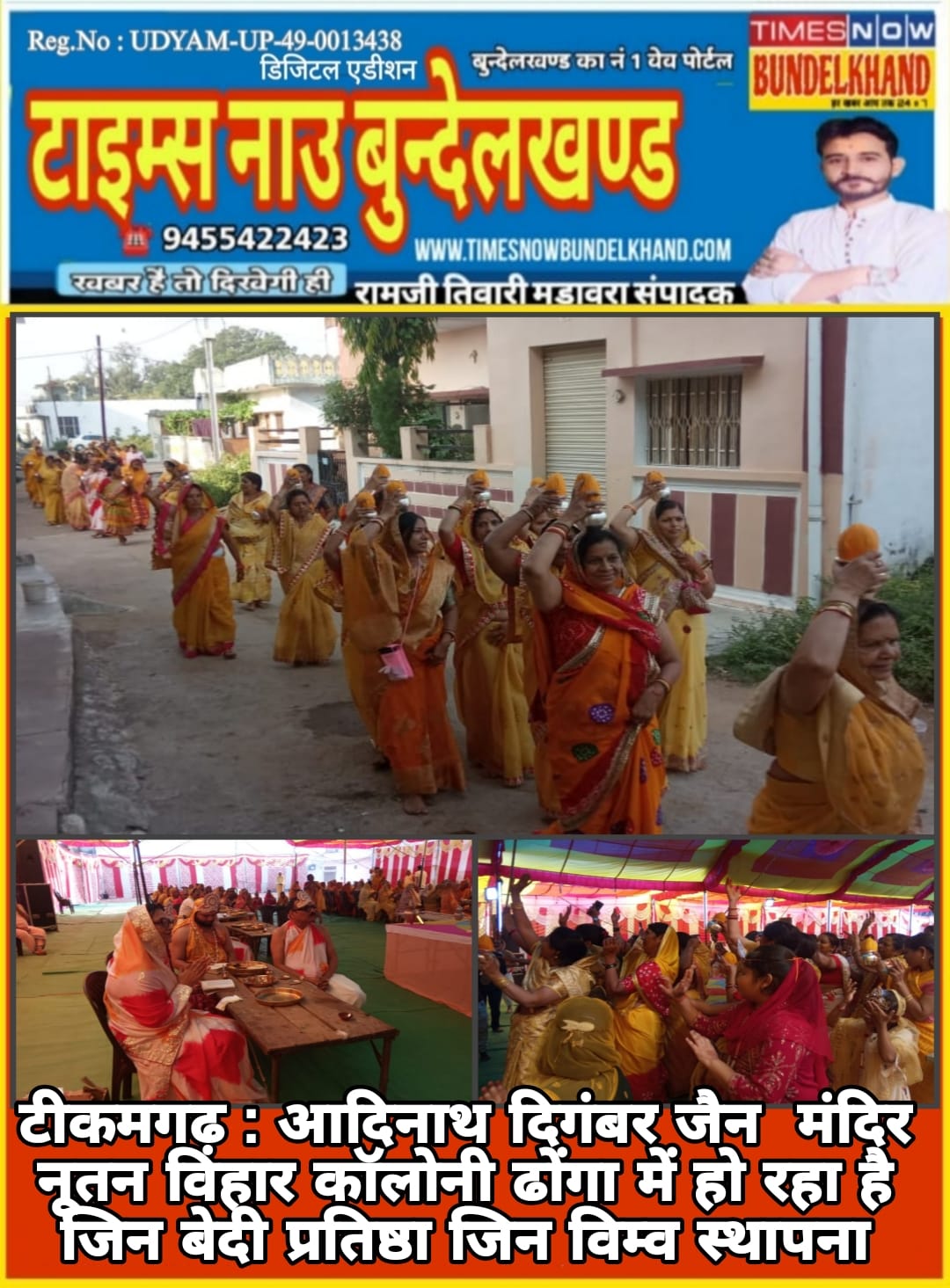 टीकमगढ़ दिगंबर जैन मंदिर नूतन विहार कॉलोनी ढोगा में बड़े ही हर्ष उत्साह और उमंग के साथ जिन बेदी प्रतिष्ठा का कार्यक्रम चल रहा है