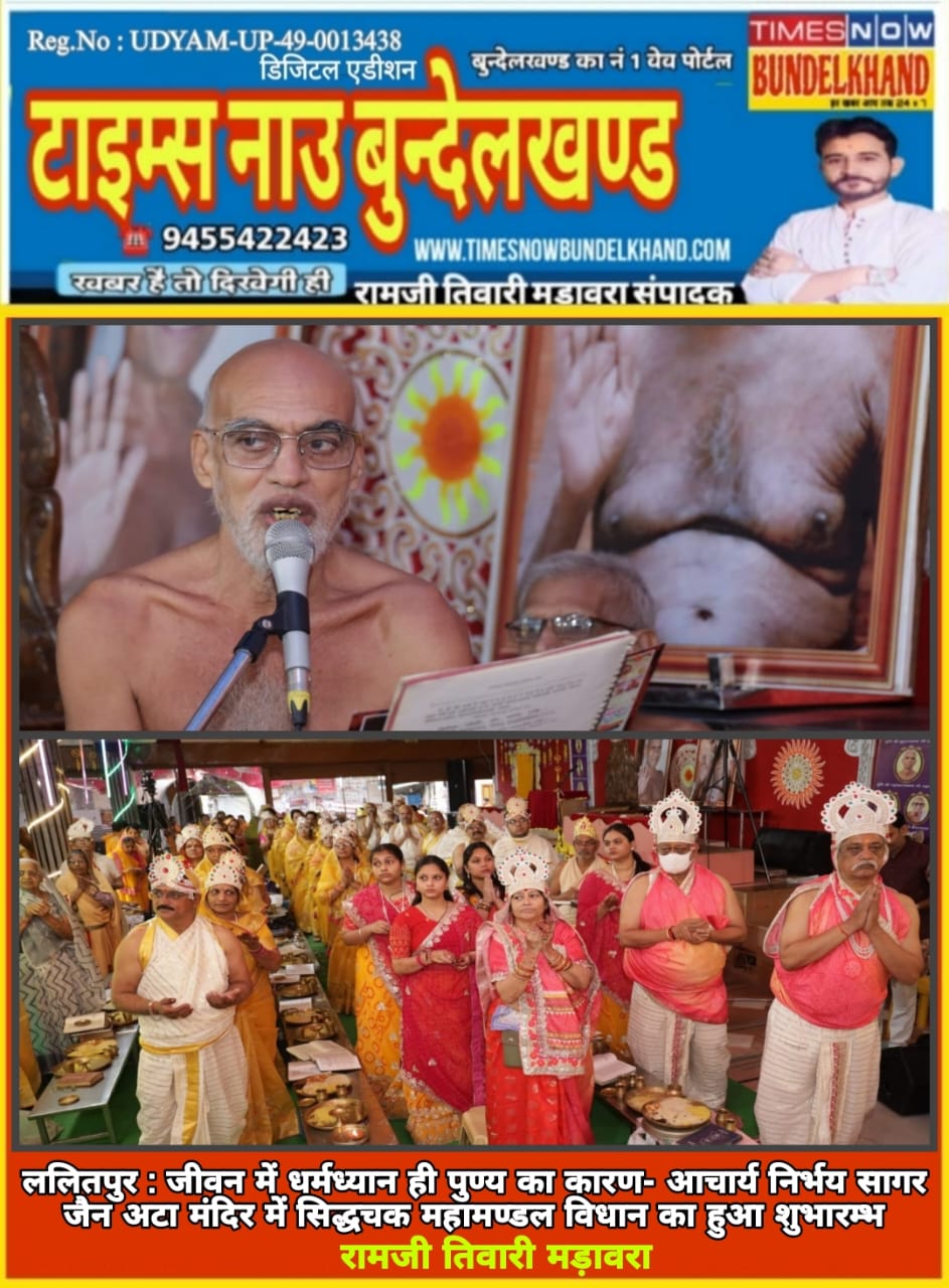 ललितपुर। जैन अटामंदिर में वैज्ञानिक संत आचार्य श्री निर्भय सागर महाराज ने कहा हमें अपनी आत्मा को पवित्र बनाना चाहिए जिससे परमात्मा अपनी आत्मा में प्रकट हो सकें। जीवन में विधान ही पुण्य का कारण है। जहां बोलने से धर्म की रक्षा होती हो प्राणियों का उपकार होता हो वहां विना पूछे ही वोलना और जहां आपका का हित नहीं हो वहां मौन ही रहना उचित है। उन्होंने कहा जो व्यक्ति दूसरों की निंदा आलोचना करता है वह दूसरों की आत्मा रूपी घर को तो साफ कर रहा है लेकिन अपनी आत्मा रूपी घर में सारा कचरा भर रहा है।
