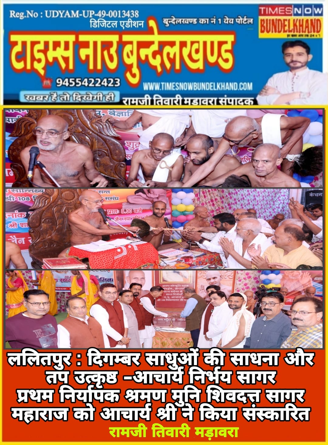 दिगम्बर साधुओं की साधना और तप उत्कृष्ठ -आचार्य निर्भय सागर प्रथम निर्यापक श्रमण मुनि शिवदत्त सागर महाराज को आचार्य श्री ने किया संस्कारित