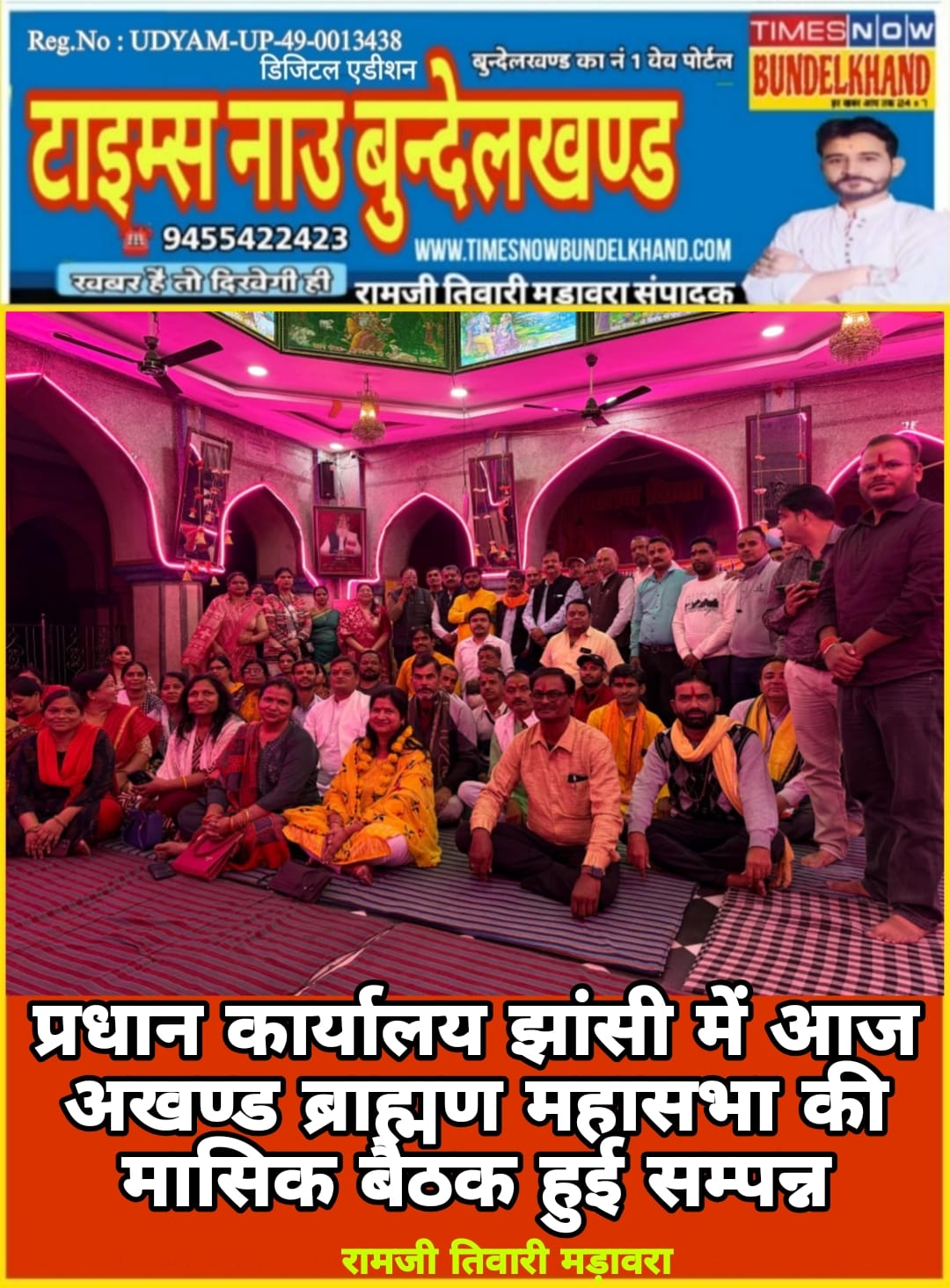 *प्रधान कार्यालय झांसी में आज अखण्ड ब्राह्मण महासभा की मासिक बैठक हुई सम्पन्न*