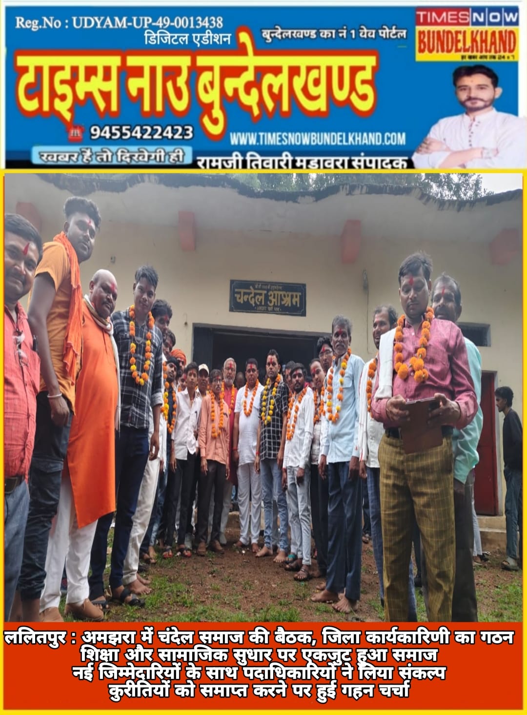 *अमझरा में चंदेल समाज की बैठक, जिला कार्यकारिणी का गठन* शिक्षा और सामाजिक सुधार पर एकजुट हुआ समाज नई जिम्मेदारियों के साथ पदाधिकारियों ने लिया संकल्प कुरीतियों को समाप्त करने पर हुई गहन चर्चा