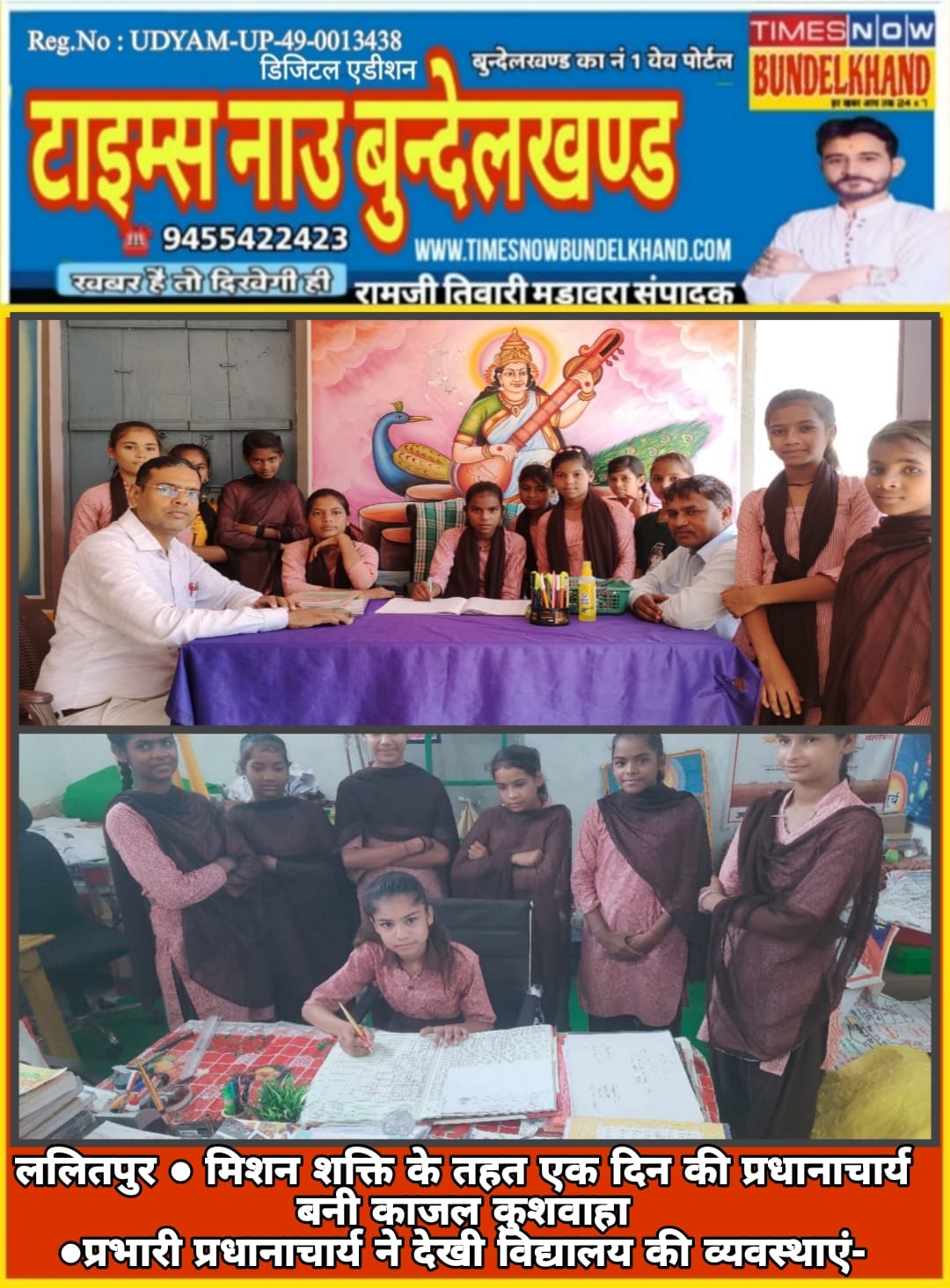 ● मिशन शक्ति के तहत एक दिन की प्रधानाचार्य बनी काजल कुशवाहा ●प्रभारी प्रधानाचार्य ने देखी विद्यालय की व्यवस्थाएं-