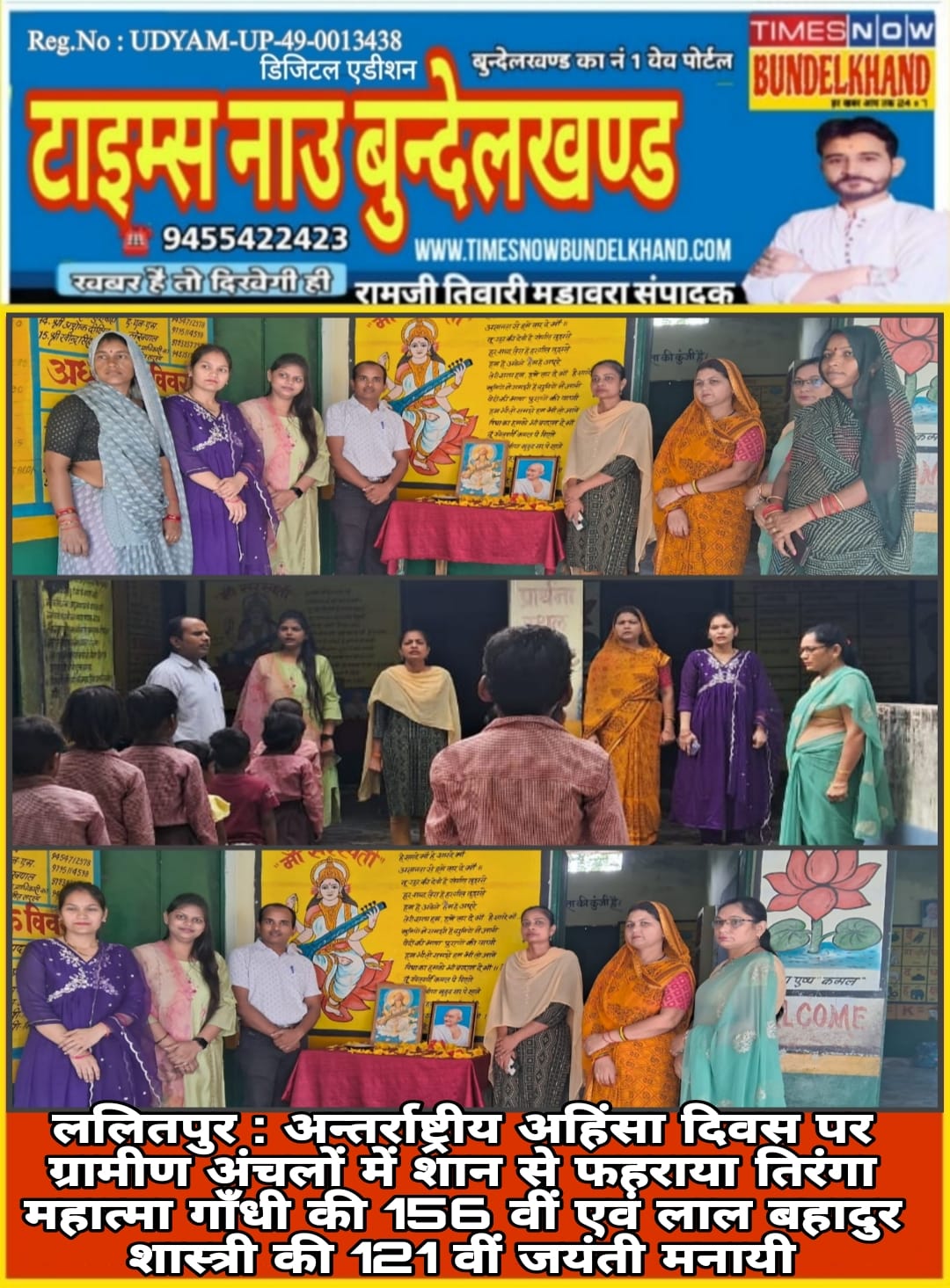 अन्तर्राष्ट्रीय अहिंसा दिवस पर ग्रामीण अंचलों में शान से फहराया तिरंगा महात्मा गाँधी की 156 वीं एवं लाल बहादुर शास्त्री की 121 वीं जयंती मनायी