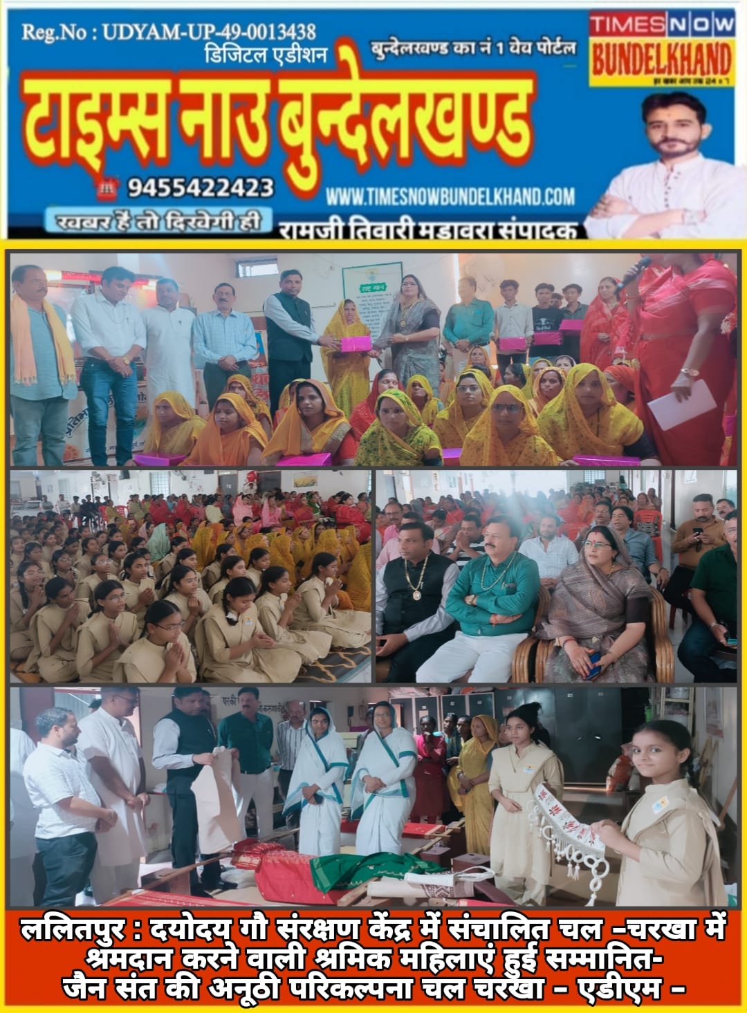 दयोदय गौ संरक्षण केंद्र में संचालित चल -चरखा में श्रमदान करने वाली श्रमिक महिलाएं हुई सम्मानित- जैन संत की अनूठी परिकल्पना चल चरखा – एडीएम –