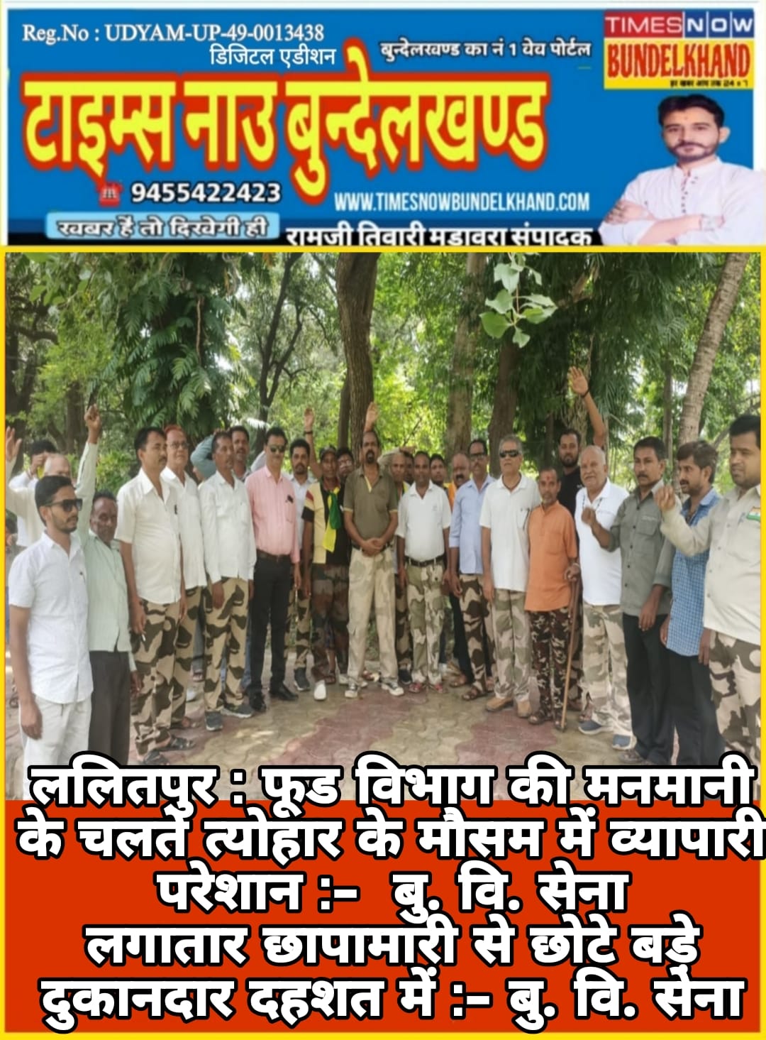 फूड विभाग की मनमानी के चलते त्योहार के मौसम में व्यापारी परेशान :- बु. वि. सेना लगातार छापामारी से छोटे बड़े दुकानदार दहशत में :- बु. वि. सेना