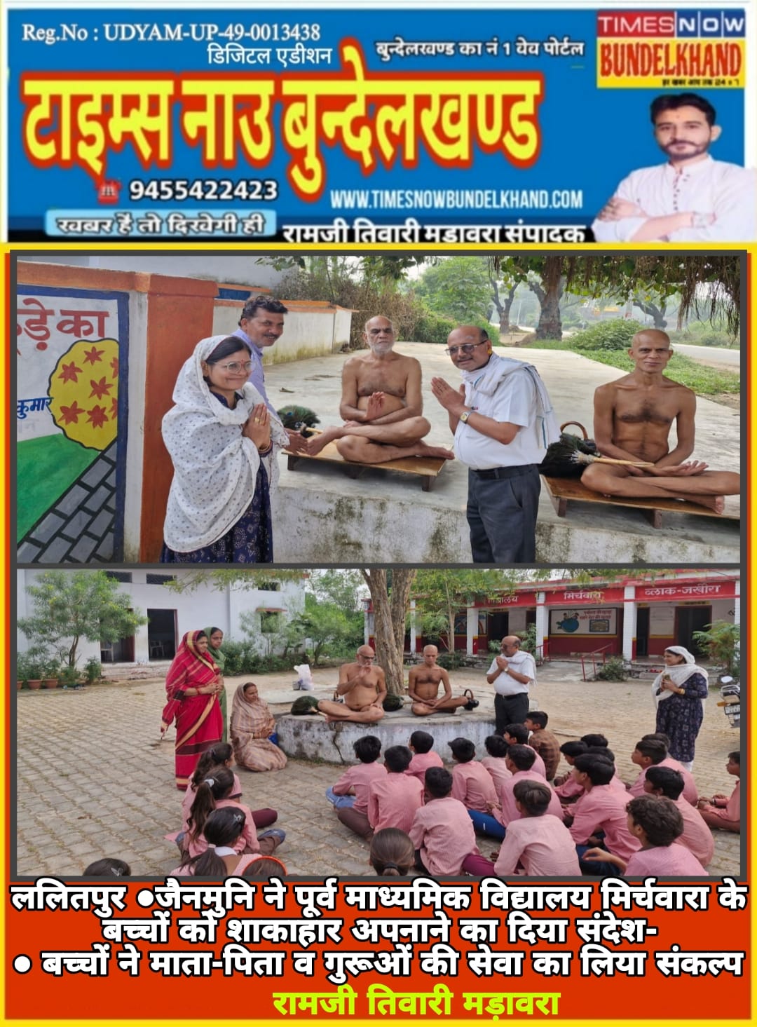 ●जैनमुनि ने पूर्व माध्यमिक विद्यालय मिर्चवारा के बच्चों को शाकाहार अपनाने का दिया संदेश- ● बच्चों ने माता-पिता व गुरूओं की सेवा का लिया संकल्प