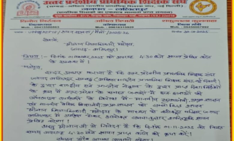 ● उत्तर प्रदेशीय प्राथमिक शिक्षक संघ छात्र- छात्राओं की ऑनलाइन उपस्थिति के संदर्भ में सौंपेगा ज्ञापन- ● 01 नवम्बर को कलेक्ट्रेट परिसर पहुंचकर जिलाधिकारी को सौंपेगें ज्ञापन-