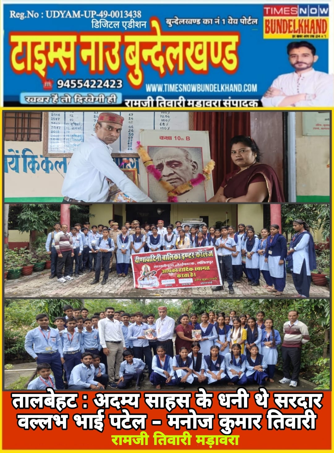 उनकी दृष्टि, दृढ़ता और निर्णय क्षमता ने इस राष्ट्र को वह स्वरूप दिया, जिस पर आज हर भारतीय गर्व करता है यह उद्गार वीणा वादिनी बालिका इण्टर कॉलेज तेरईफाटक ललितपुर के प्रधानाचार्य मनोज कुमार तिवारी ने छात्रों के मध्य आयोजित कार्यक्रम में कहीं।