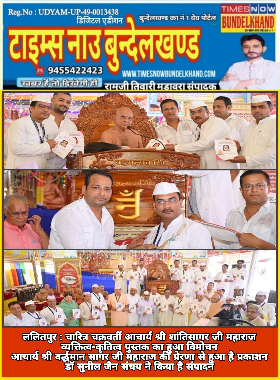 चारित्र चक्रवर्ती आचार्य श्री शांतिसागर जी महाराज व्यक्तित्व-कृतित्व पुस्तक का हुआ विमोचन आचार्य श्री वर्द्धमान सागर जी महाराज की प्रेरणा से हुआ है प्रकाशन डॉ सुनील जैन संचय ने किया है संपादन