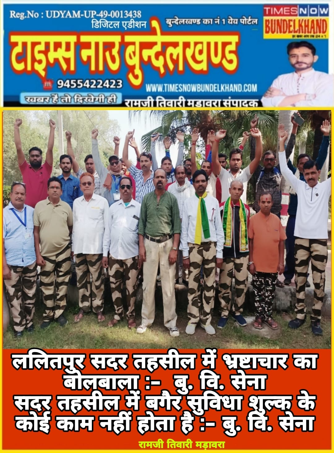 ललितपुर सदर तहसील में भ्रष्टाचार का बोलबाला :- बु. वि. सेना सदर तहसील में बगैर सुविधा शुल्क के कोई काम नहीं होता है :- बु. वि. सेना
