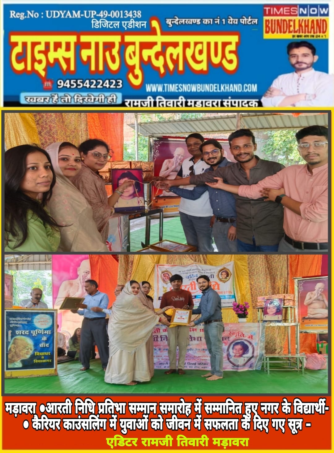 ●आरती निधि प्रतिभा सम्मान समारोह में सम्मानित हुए नगर के विद्यार्थी- ● कैरियर काउंसलिंग में युवाओं को जीवन में सफलता के दिए गए सूत्र –