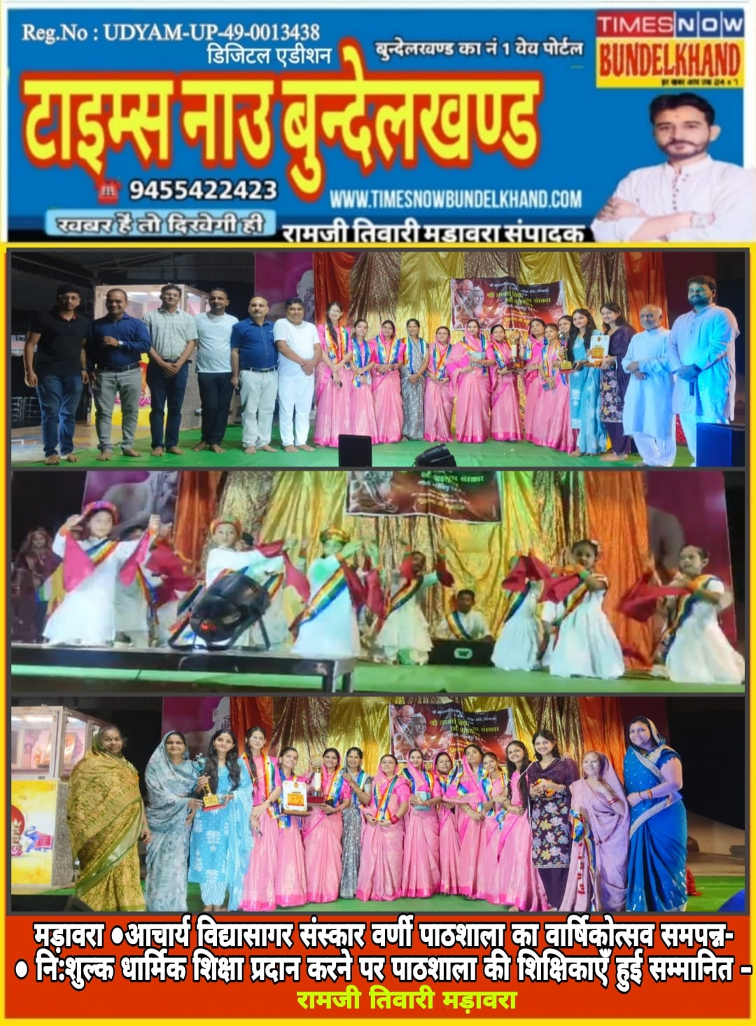 ●आचार्य विद्यासागर संस्कार वर्णी पाठशाला का वार्षिकोत्सव समपन्न- ● नि:शुल्क धार्मिक शिक्षा प्रदान करने पर पाठशाला की शिक्षिकाएँ हुई सम्मानित –