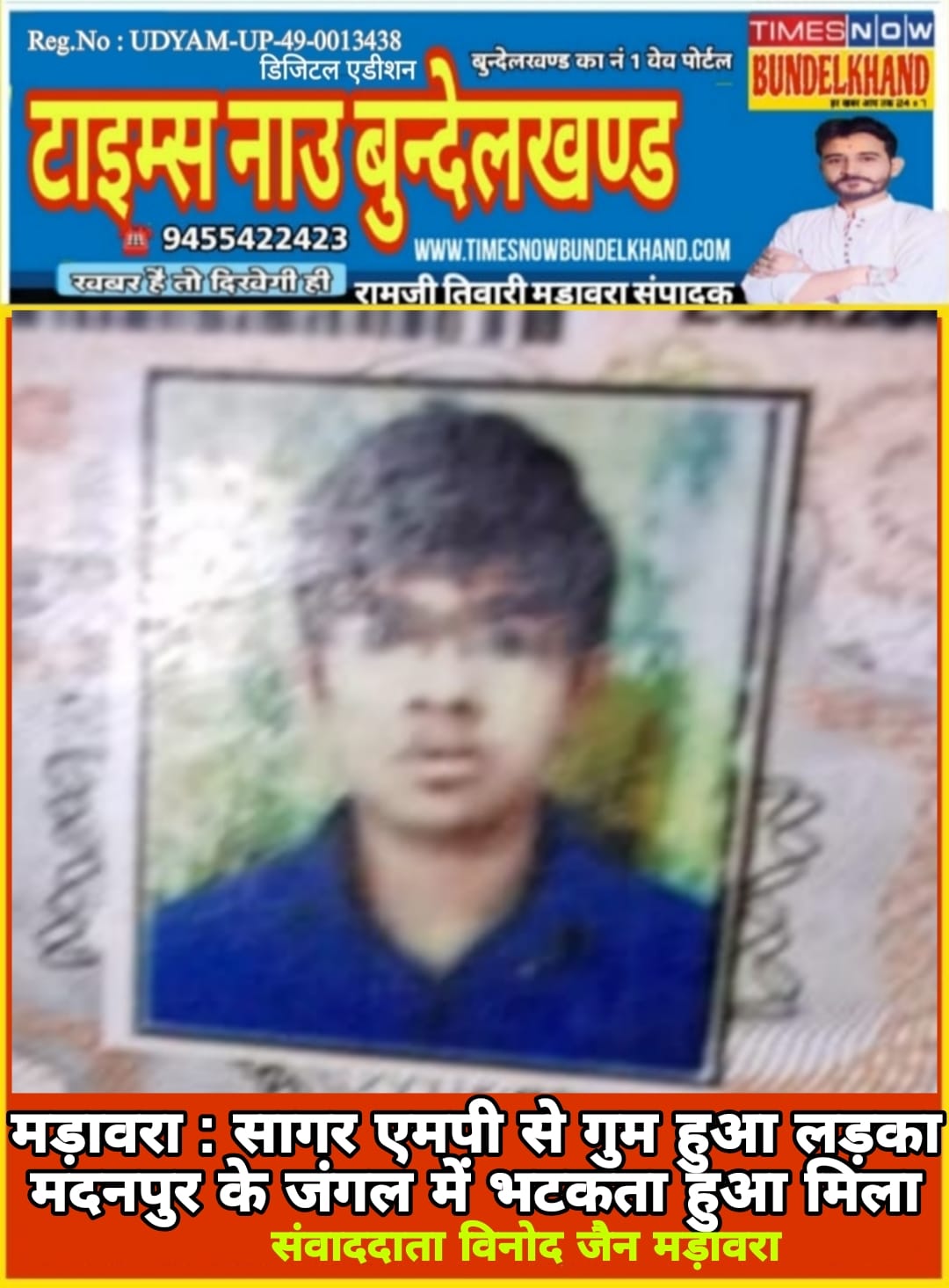 सागर एमपी से गुम हुआ लड़का मदनपुर के जंगल में भटकता हुआ मिला