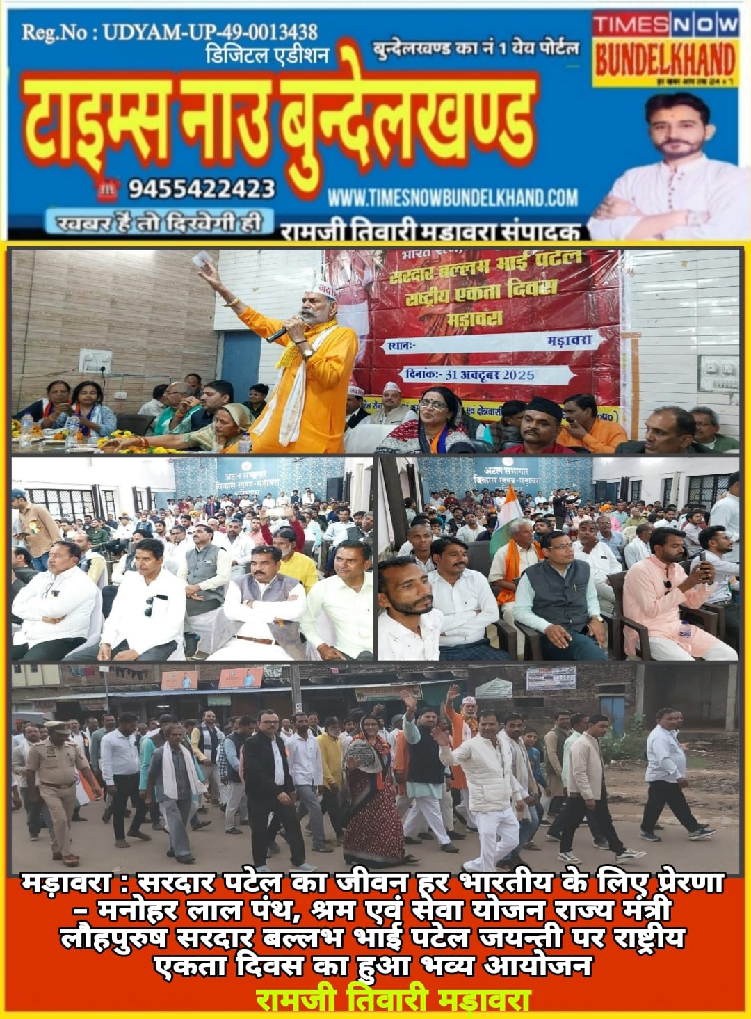 सरदार पटेल का जीवन हर भारतीय के लिए प्रेरणा – मनोहर लाल पंथ, श्रम एवं सेवा योजन राज्य मंत्री लौहपुरुष सरदार बल्लभ भाई पटेल जयन्ती पर राष्ट्रीय एकता दिवस का हुआ भव्य आयोजन