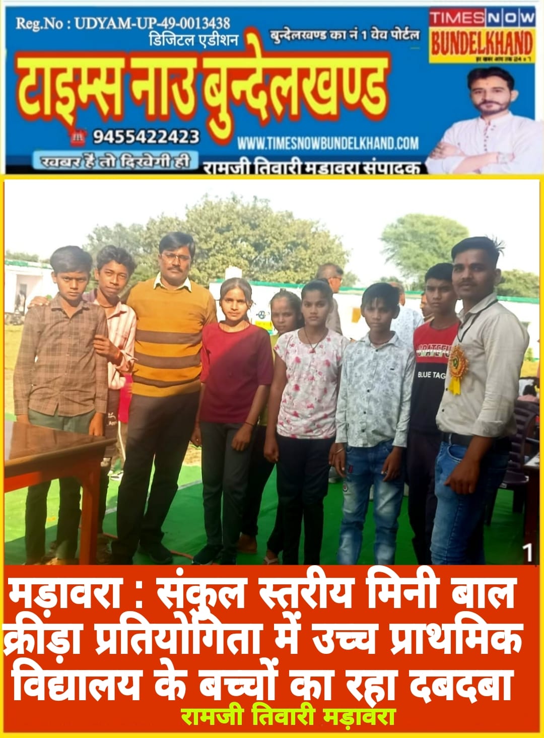 जिला बेसिक शिक्षा अधिकारी ललितपुर रणवीर सिंह एवं खण्ड शिक्षा अधिकारी मड़ावरा नरेश कुमार रावत के निर्देशन में डोंगरा में खुर्द आयोजित संकुल स्तरीय नाराहट न्याय पंचायत की मिनी बाल क्रीड़ा प्रतियोगिता में उच्च प्राथमिक विद्यालय के बच्चों का दबदबा रहा।