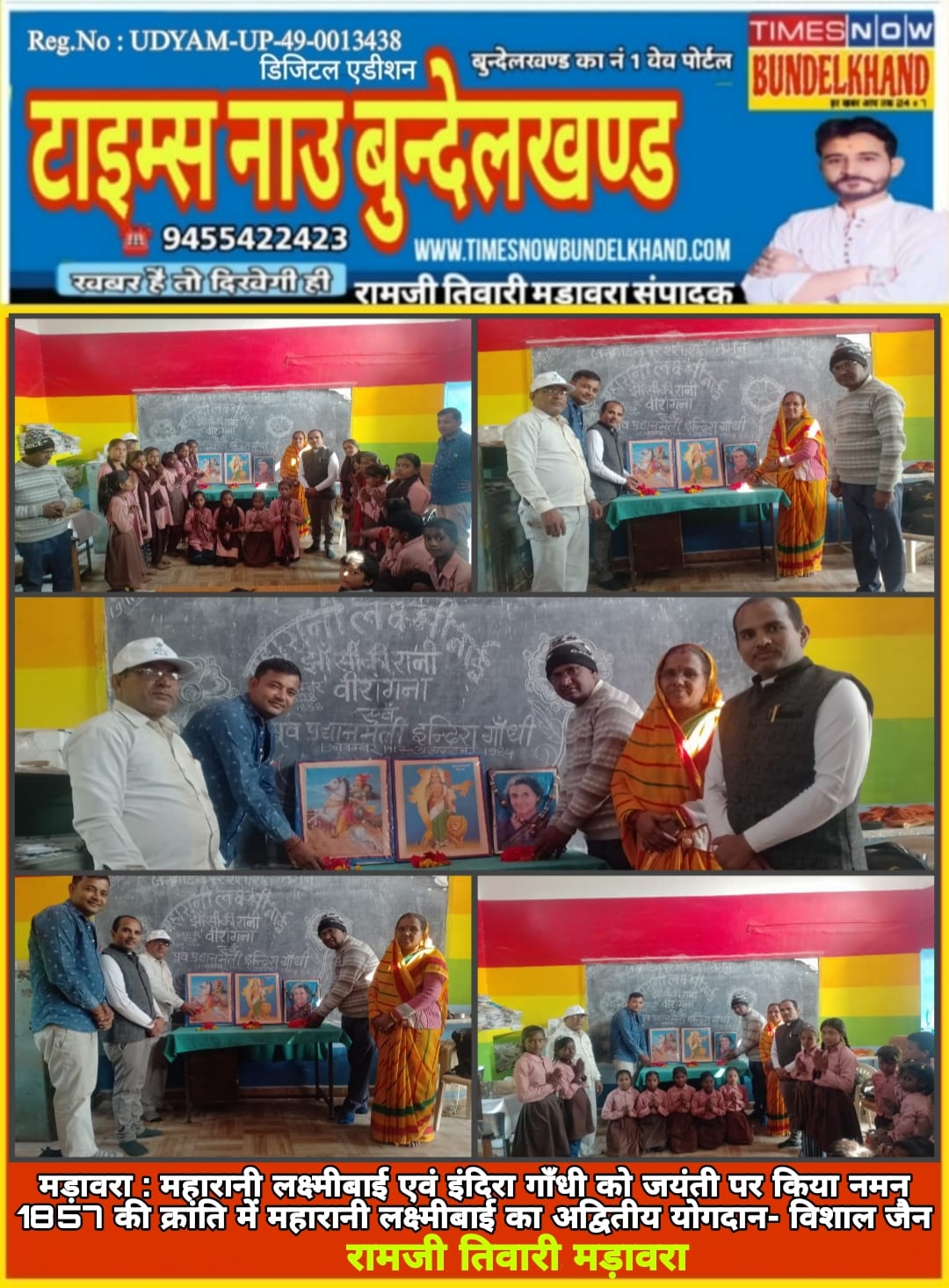 मड़ावरा (ललितपुर) विकासखंड अंतर्गत संकुल केंद्र पारौल के उच्च प्राथमिक विद्यालय गुरयाना में झाँसी की वीरांगना महारानी लक्ष्मीबाई की 197 वीं जयंती एवं देश की पूर्व प्रधानमंत्री इंदिरा गाँधी की 108 वीं जयंती धूमधाम से मनायी गयी। इस मौक़े पर विद्यालय स्टाफ एवं बच्चों ने चित्र के समक्ष श्रद्धा सुमन समर्पित विनयांजलि समर्पित की। इस मौक़े पर सहायक अध्यापक विशाल जैन पवा ने कहा प्रथम स्वतंत्रता संग्राम 1857 की क्रांति में महारानी लक्ष्मीबाई का अद्वितीय योगदान है। उन्होंने कभी हिम्मत नहीं हारी और अंग्रेजों से लोहा लेकर हर हाल में देश की रक्षा करने का संकल्प लिया। उनके बचपन का नाम मणिकर्णिका था और प्यार से सभी लोग उन्हें मनु या छबीली कहते थे।