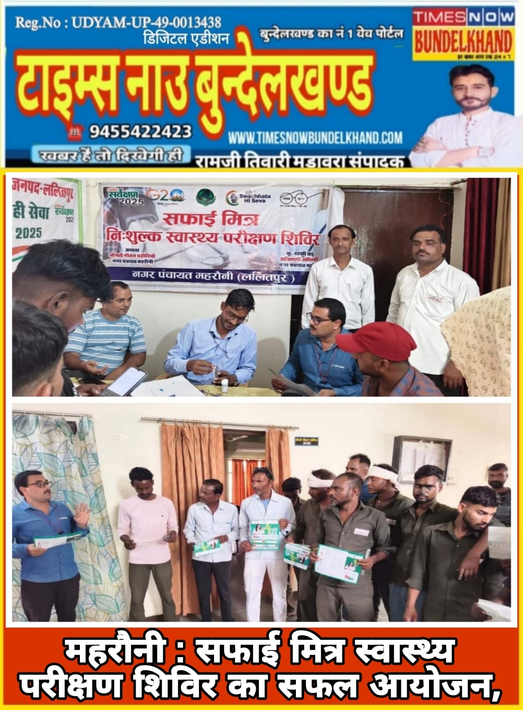 इसी क्रम में सामुदायिक स्वास्थ्य केन्द्र महरौनी के प्रशिक्षित चिकित्सकों की टीम द्वारा कार्यालय नगर पंचायत महरौनी में दो दिवसीय निशुल्क सफाई मित्र स्वास्थ्य परीक्षण शिविर का आयोजन 22 एवं 23 सितम्बर 2025 को किया गया।