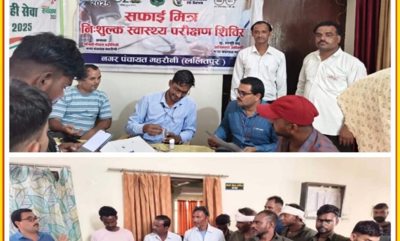 इसी क्रम में सामुदायिक स्वास्थ्य केन्द्र महरौनी के प्रशिक्षित चिकित्सकों की टीम द्वारा कार्यालय नगर पंचायत महरौनी में दो दिवसीय निशुल्क सफाई मित्र स्वास्थ्य परीक्षण शिविर का आयोजन 22 एवं 23 सितम्बर 2025 को किया गया।