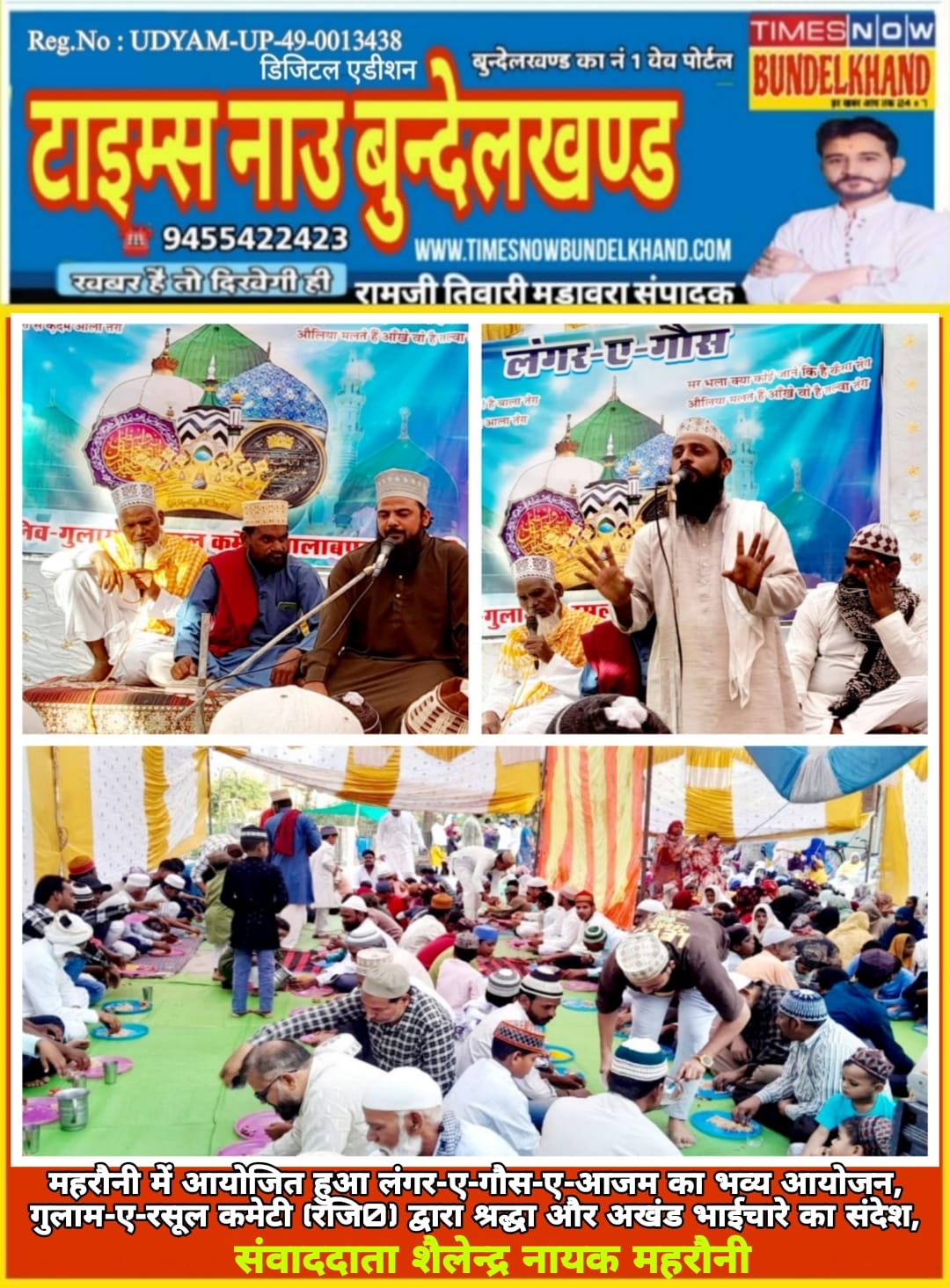 महरौनी में आयोजित हुआ लंगर-ए-गौस-ए-आजम का भव्य आयोजन, गुलाम-ए-रसूल कमेटी (रजि0) द्वारा श्रद्धा और अखंड भाईचारे का संदेश,
