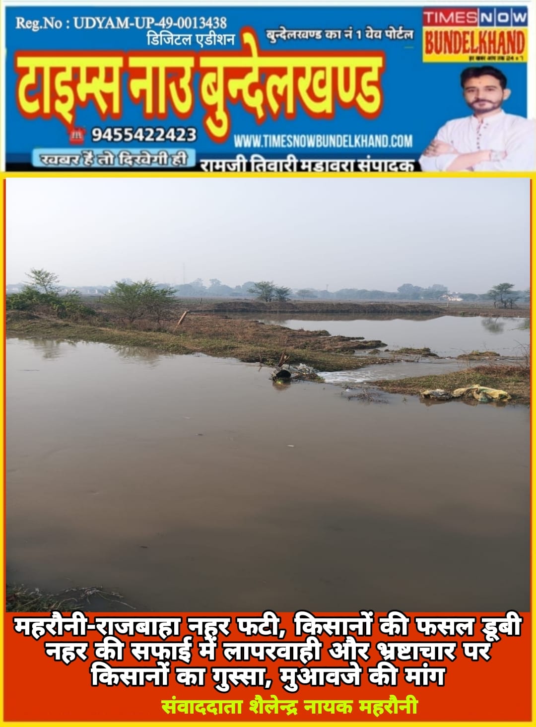महरौनी-राजबाहा नहर फटी, किसानों की फसल डूबी नहर की सफाई में लापरवाही और भ्रष्टाचार पर किसानों का गुस्सा, मुआवजे की मांग