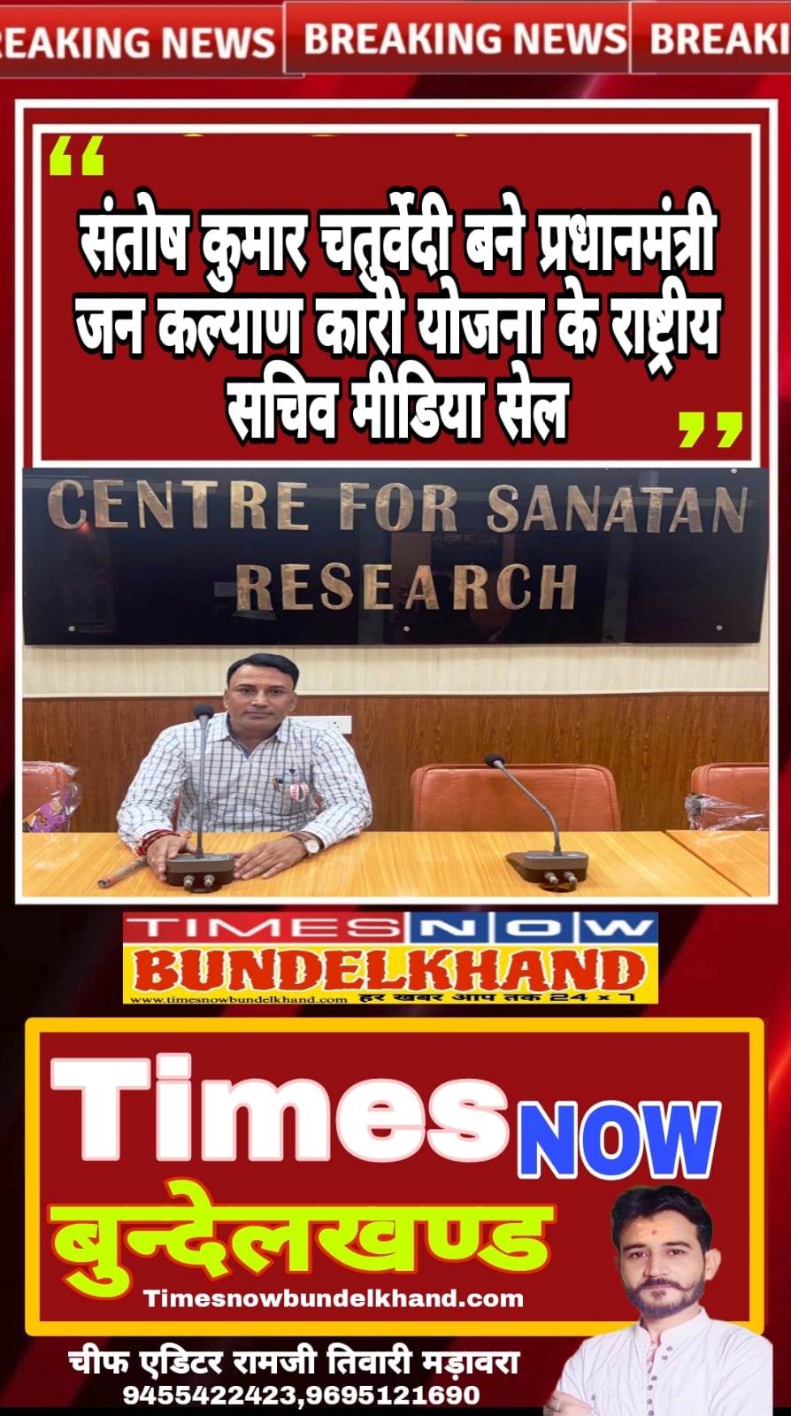संतोष कुमार चतुर्वेदी बने प्रधानमंत्री जन कल्याण कारी योजना के राष्ट्रीय सचिव मीडिया सेल