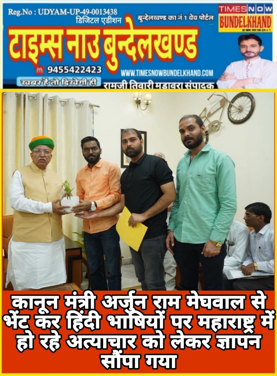 केंद्रीय मंत्री श्री **अर्जुन राम मेघवाल** ने ज्ञापन को गंभीरता से लेते हुए आश्वासन दिया कि विषय पर आवश्यक कदम उठाए जाएंगे और हिंदी भाषियों के साथ किसी प्रकार का अन्याय बर्दाश्त नहीं किया जाएगा।
