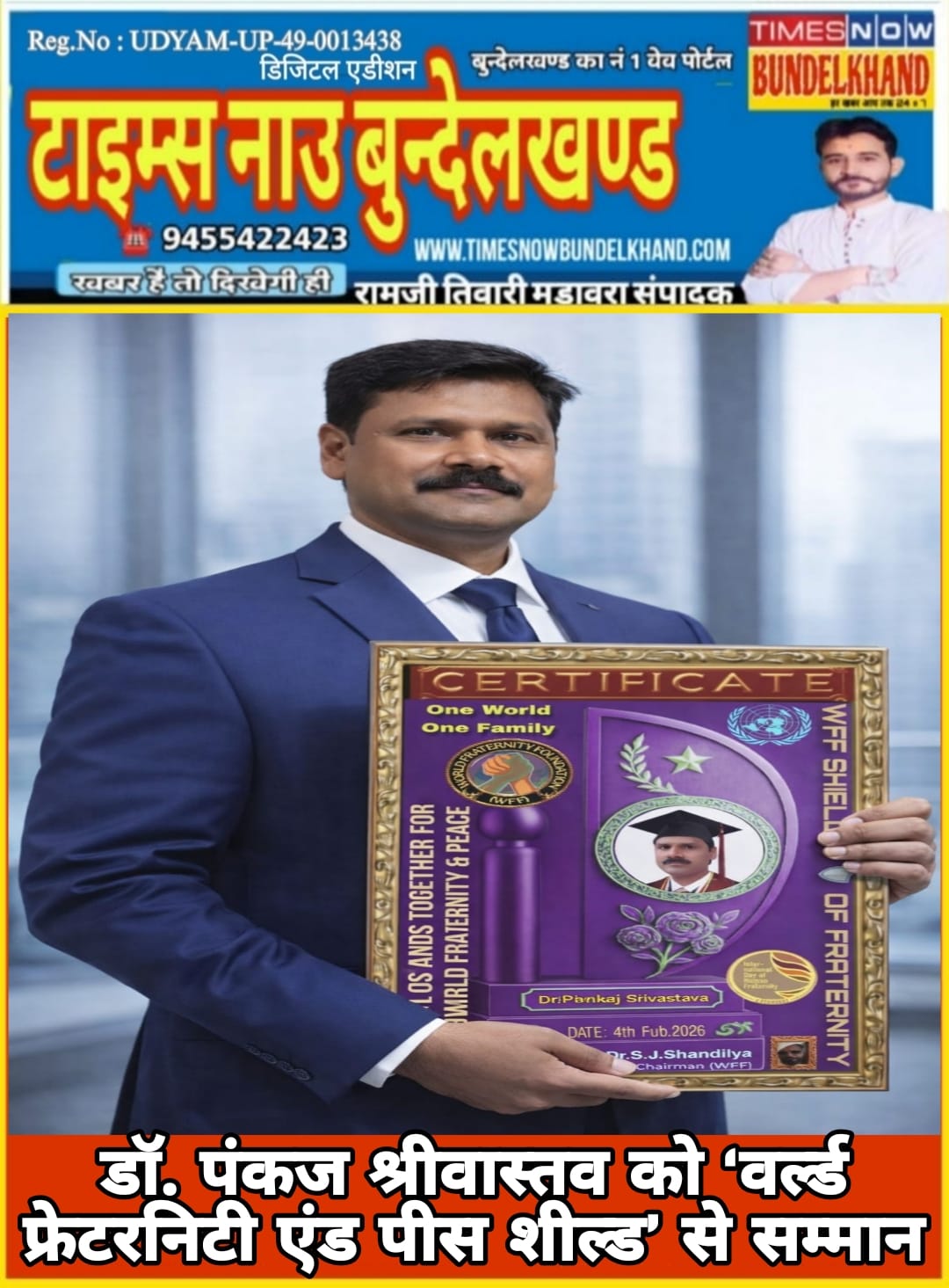 विश्व बंधुत्व, शांति एवं मानव एकता के क्षेत्र में उल्लेखनीय योगदान के लिए डॉ. पंकज श्रीवास्तव को प्रतिष्ठित ‘वर्ल्ड फ्रेटरनिटी एंड पीस शील्ड’ से सम्मानित किया गया। यह सम्मान वर्ल्ड फ्रेटरनिटी फाउंडेशन (WFF) द्वारा अंतरराष्ट्रीय मानव बंधुत्व दिवस के अवसर पर प्रदान किया गया।