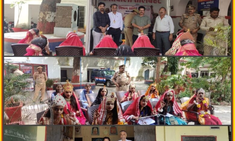 तालबेहट : तेरईफाटक ललितपुर स्थिति वीणा वादिनी बालिका इण्टर कॉलेज तेरईफाटक ललितपुर की छात्राओं द्वारा मिशन शक्ति कार्यक्रम के अन्तर्गत आज कोतवाली तालबेहट का भ्रमण कर विभिन्न प्रकार की जानकारी प्राप्त की । सभी छात्राये मां दुर्गा के अष्टरुप में कोतवाली पहुंची। प्रभारी निरीक्षक मनोज मिश्रा ने सभी अष्टभुजा माताओ का पूजन किया व कोतवाली में संचालित सभी प्रकार की जानकारी छात्राओं को प्रदान की।इस अवसर पर नगर पंचायत तालबेहट के अध्यक्ष पुनीत सिंह परिहार, व्यापार मण्डल के अध्यक्ष विजय सोनी, दैनिक जागरण के तहसील संवाददाता अखिलेश जैन,सुनील त्रिपाठी बाबा, राजेन्द्र गोस्वामी अध्यक्ष ग्रामीण पत्रकार एसोसिएशन तालबेहट , वीणा वादिनी बालिका इण्टर कॉलेज तेरईफाटक के प्रधानाचार्य मनोज कुमार तिवारी, स्काउट गाइड की प्रभारी श्रेया तिवारी उपस्थित रहीं।
