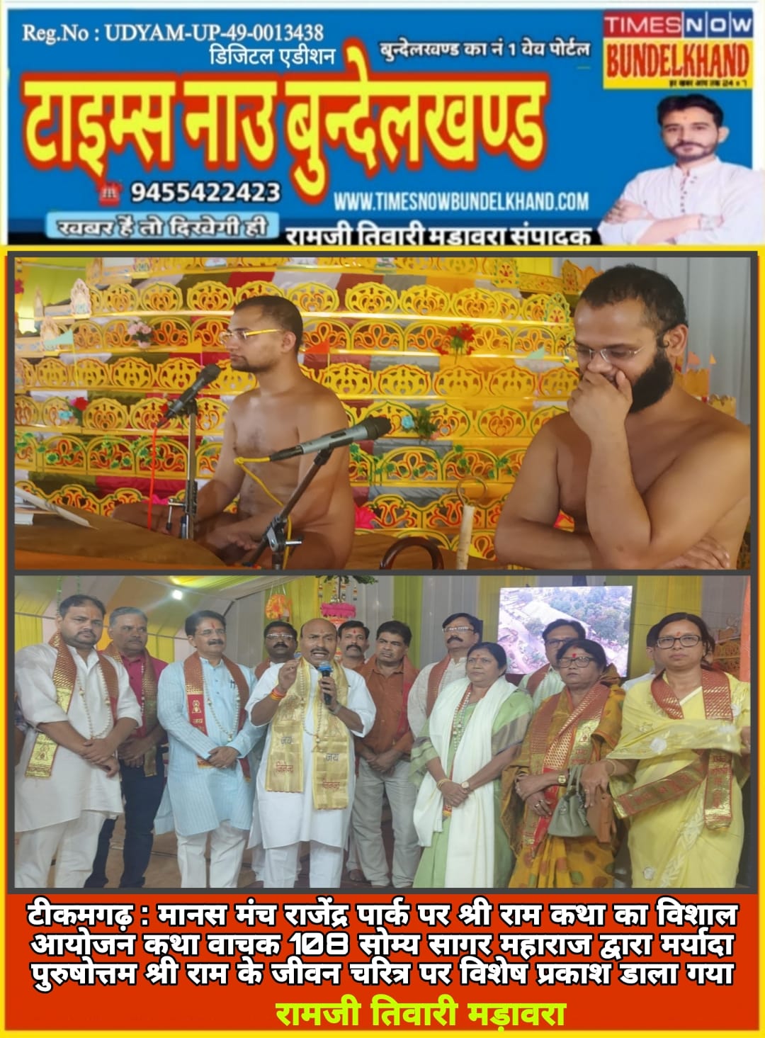 , टीकमगढ़ शहर के मानस मंच पर श्री राम कथा का दूसरे दिवस पर दोपहर 2:30 पर श्री राम कथा का आयोजन किया गया